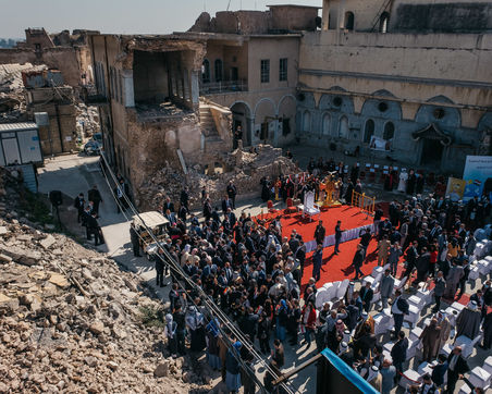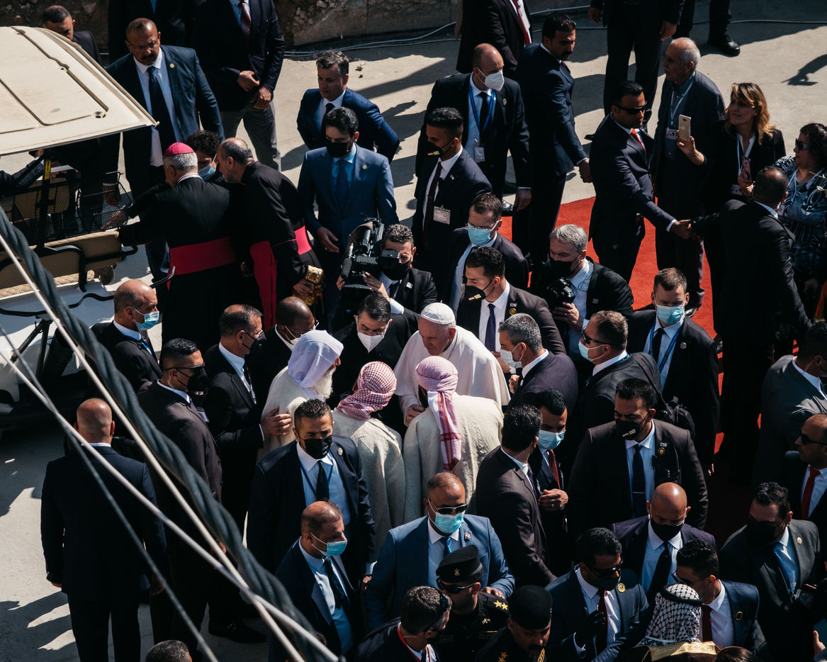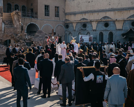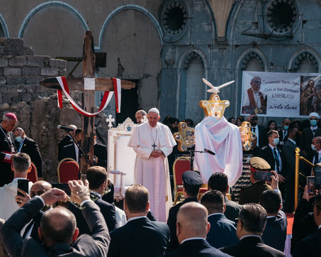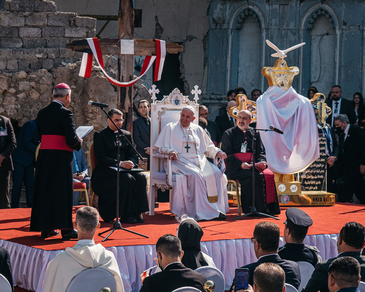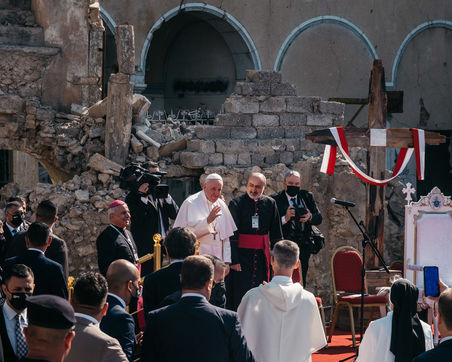 March 7, 2021: In the heart of old Mosul, particularly bruised by the war against the Islamic State, Pope Francis held a speech of peace and fraternity in front of an assembly of Mosul Christians and Sunni Muslims and a large security force.