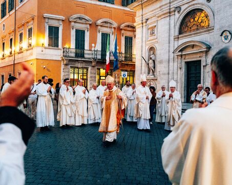 Trois cardinaux français réunis à Rome pour une messe dans l'église Saint Louis des Français, dix jours avant le conclave visant à élire le nouveau pape