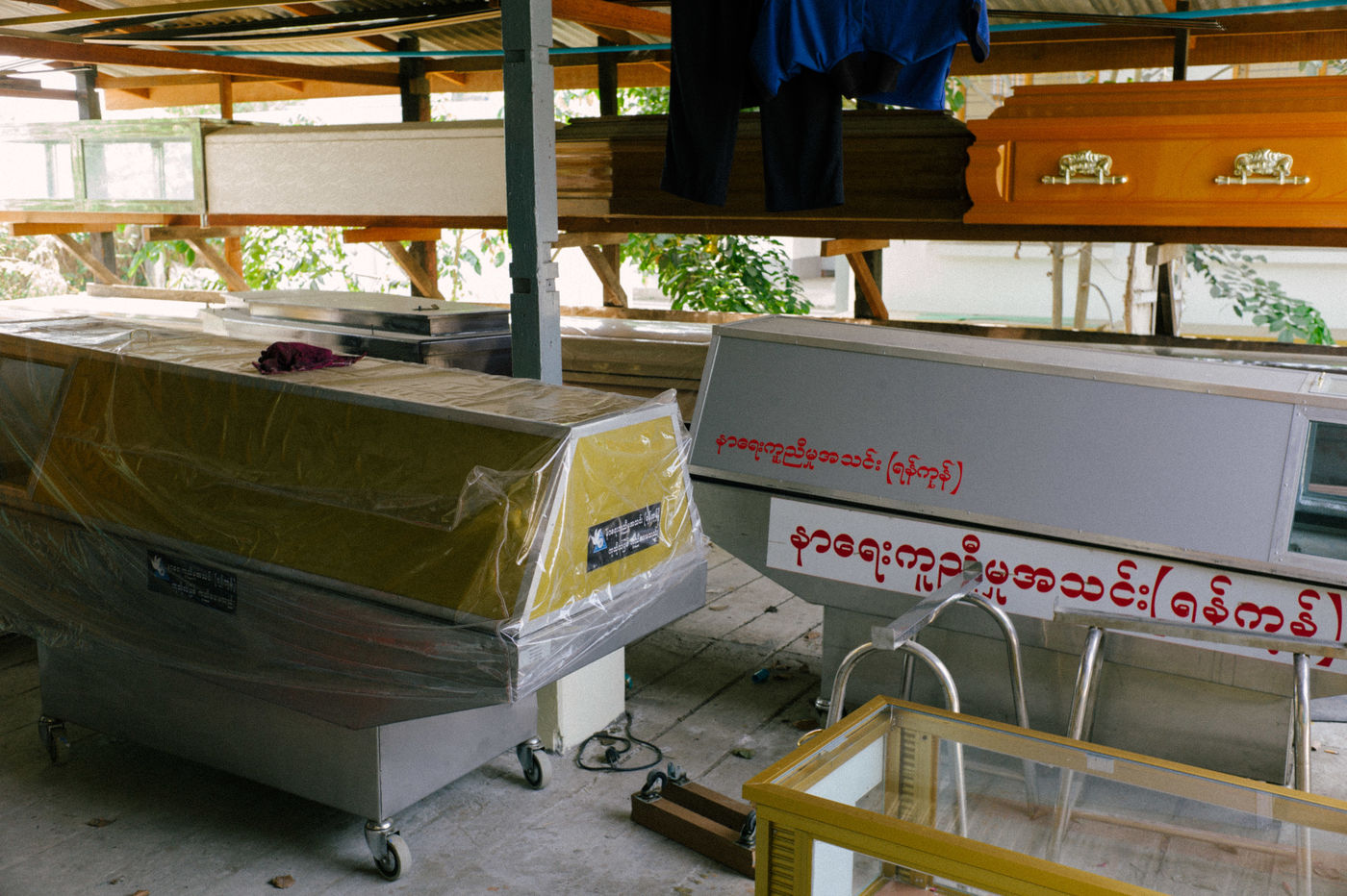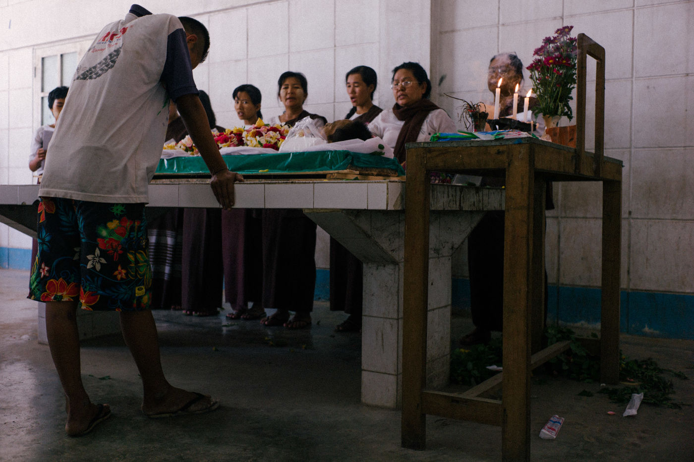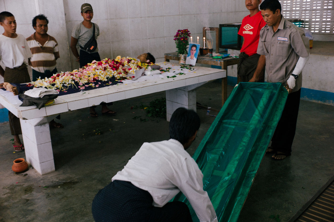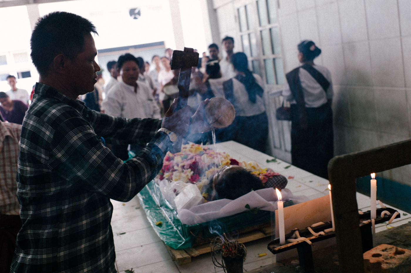 Kyaw Thu, ancienne star de cinéma birman a décidé d'utiliser sa célébrité pour pallier les manques de l'Etat birman en termes de santé et de prise en charge sociale. Il y a près de 14 ans il fonde la Free Funeral Service Society (FFSS) association qui permet aujourd'hui de prendre en charge les funérailles des Birmans les plus pauvres du township de Dagon Nord, en banlieue de Yangon a raison de 30 à 40 funérailles par jour.