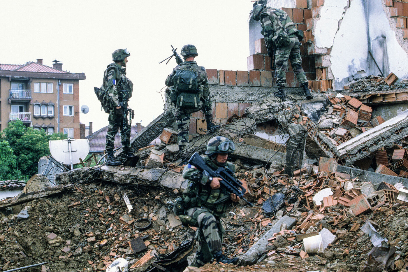 France is a major contributor to KFOR with a maximum of 6,000 troops out of a total of 50,000 at the start of the operation. NATO initially divided the command of KFOR into five Multinational Task Forces (TFMN) ? North, West, South, East and Centre. The more than 2,000 French soldiers of Operation TRIDENT are mainly engaged within the TFMN-Nord, where a total of more than 3,000 soldiers from six different nations serve under French command in the early 2000s. February 28, 2011 , Multinational Battalion North was disbanded as part of KFOR reorganization transforming TFMNs into Mutinational Battles Groups (MNBG)