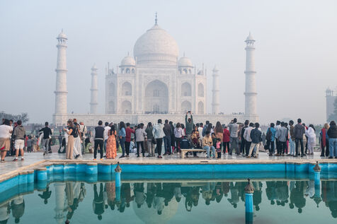 Sa construction commence en 1632, mais la date exacte de la fin des travaux demeure incertaine. Selon le chroniqueur officiel de Shâh Jahân, Abdul Hamid Lahori, le Taj Mahal est achevé à la fin de 1643 ou au début de 1644. Mais une inscription dans l'entrée principale indique que la construction s'est achevée en 1648. L'État de l'Uttar Pradesh, qui a célébré officiellement le 350e anniversaire de l'édifice en 2004, affirme quant à lui que les travaux se sont achevés en 1654. Le chercheur Andrew Petersen, lui, mentionne prudemment que « les travaux ont duré plus de vingt ans ».