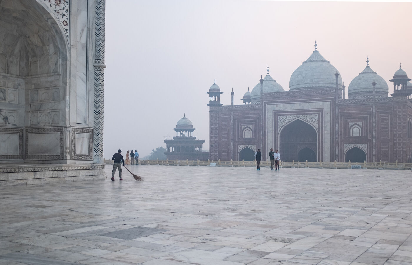 Le chantier aurait mobilisé 22 000 esclaves ainsi que des maîtres artisans venus d'Europe et d'Asie centrale. On pense en général que l'architecte principal fut Ustad Ahmad Lahauri de Lahorek.