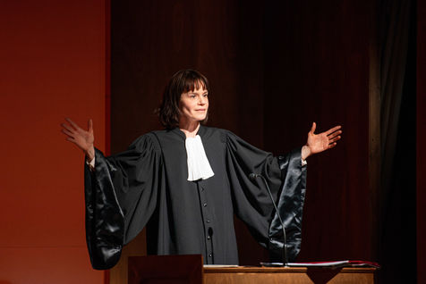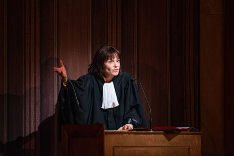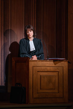 HORS LA LOI, texte et mise en scène de Pauline Bureau, scénographie d'Emmanuelle Roy au Vieux Colombier de la Comédie-Française, du 24 mai au 7 juillet 2019, avec Claire de La Rüe du Can, Coraly Zahonero, Françoise Gillard, Martine Chevallier, Martine Chevallier, Sarah Brannens, Daniele Lebrun, Laurent Natrella et Alexandre Pavloff.