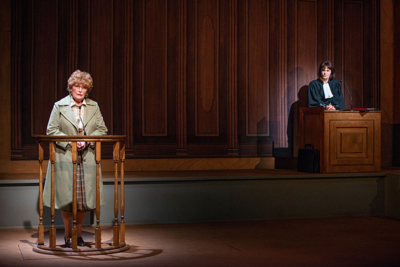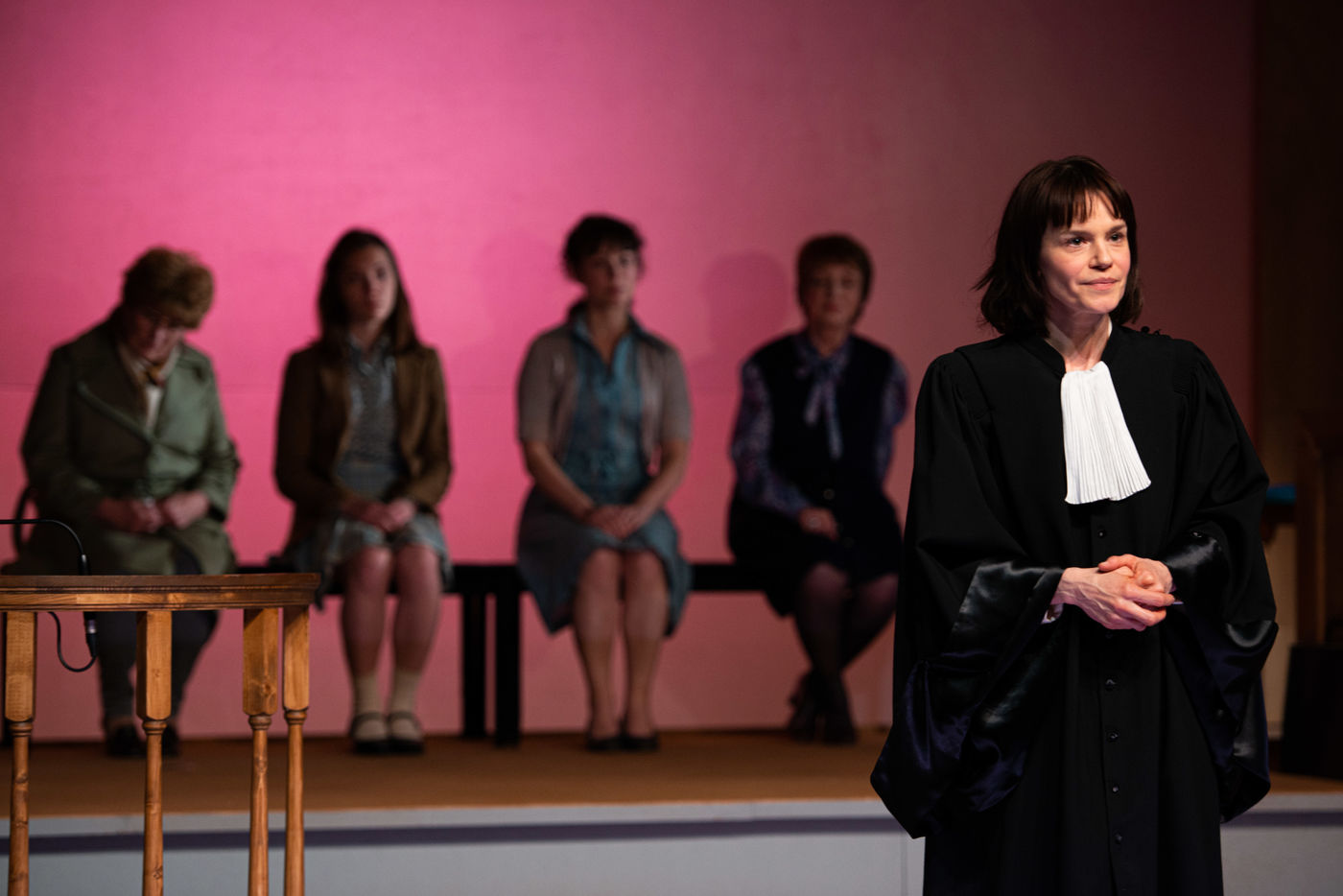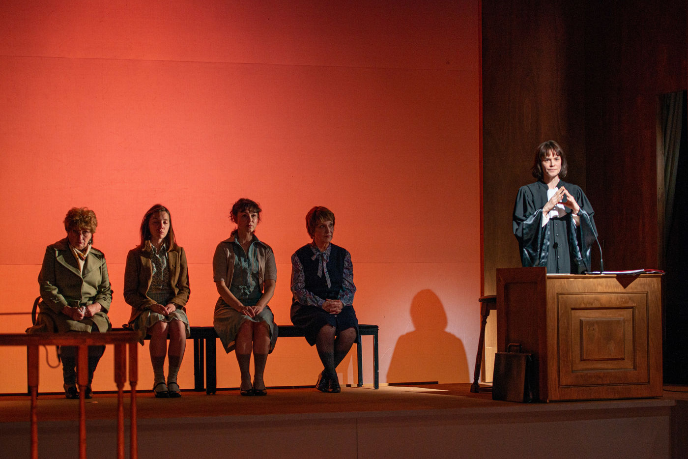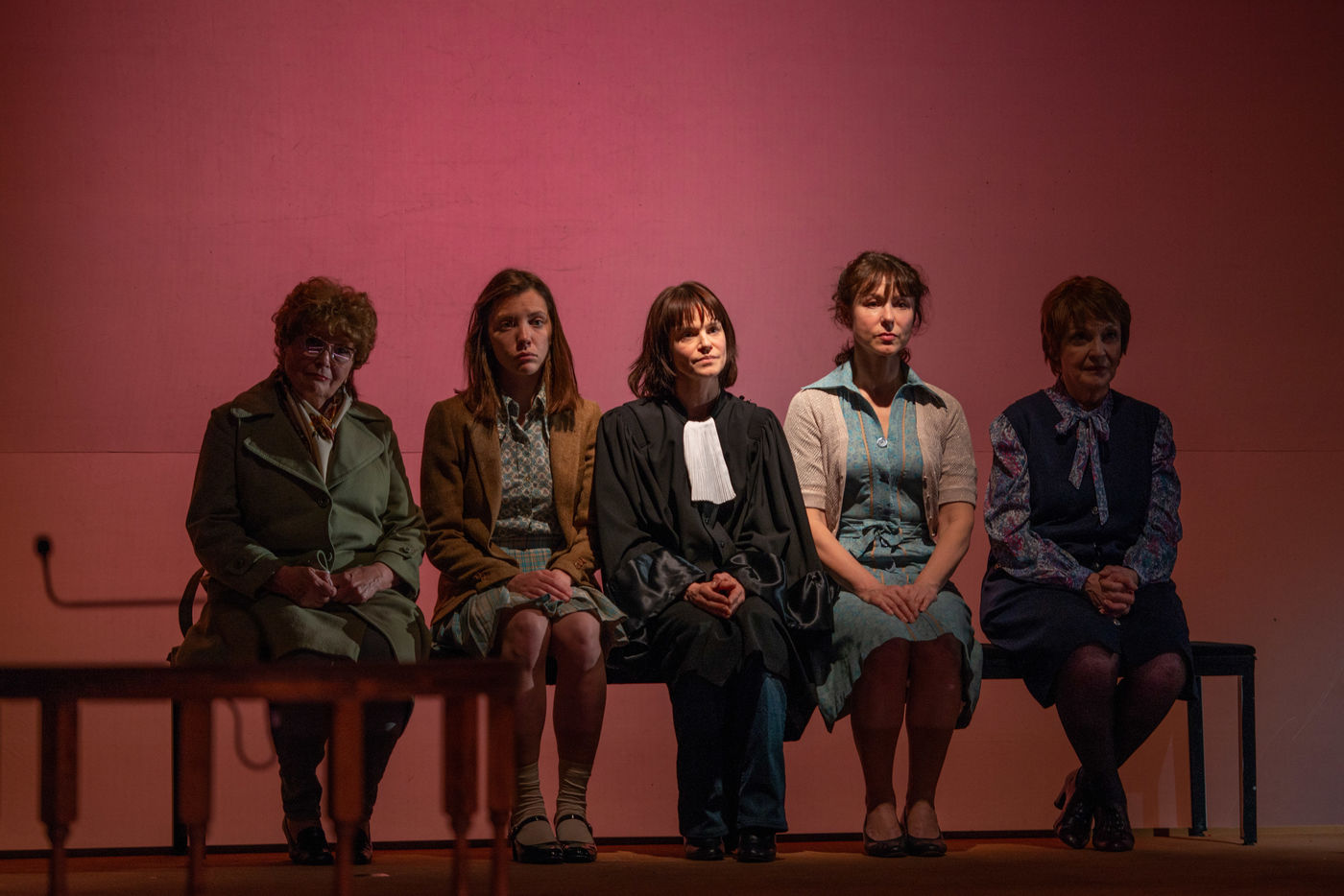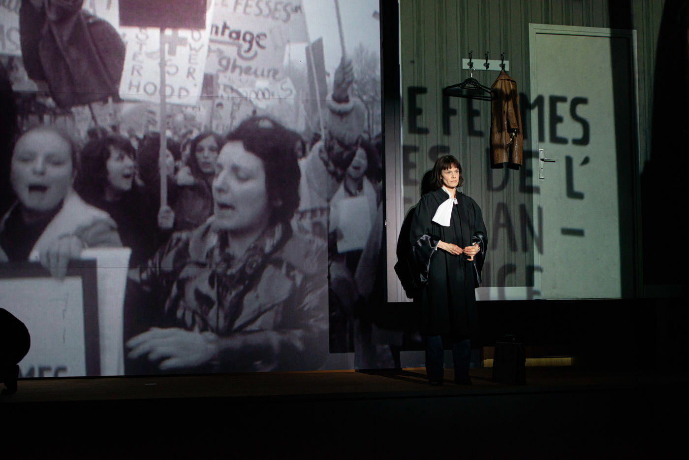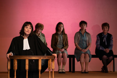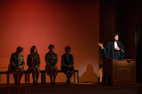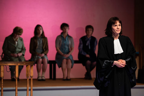HORS LA LOI, written and directed by Pauline Bureau, set design by Emmanuelle Roy at the Vieux Colombier de la Comédie-Française, from May 24th to July 7th, 2019, with Claire de La Rüe du Can, Coraly Zahonero, Françoise Gillard, Martine Chevallier, Martine Chevallier, Sarah Brannens, Daniele Lebrun, Laurent Natrella and Alexandre Pavloff.