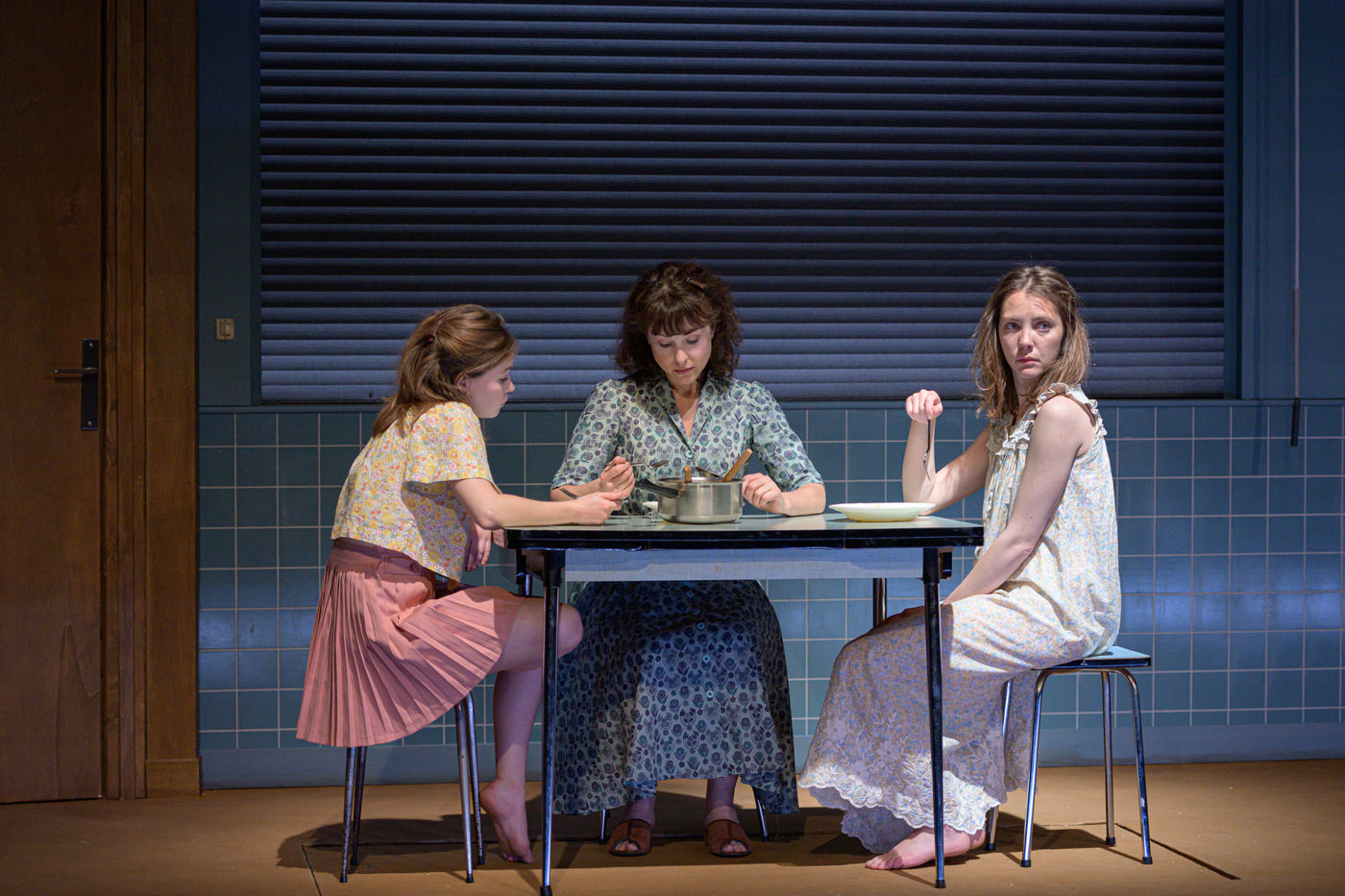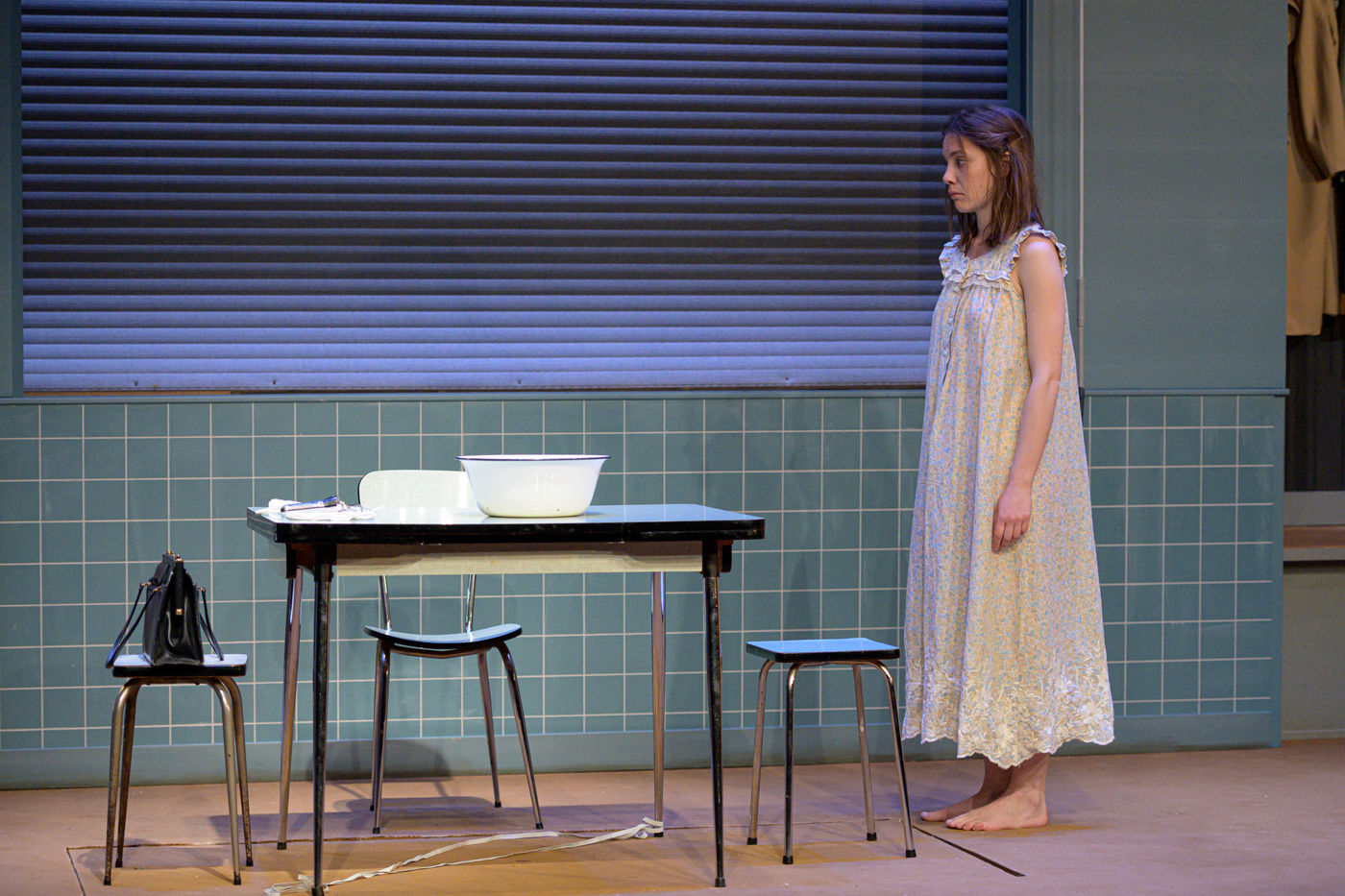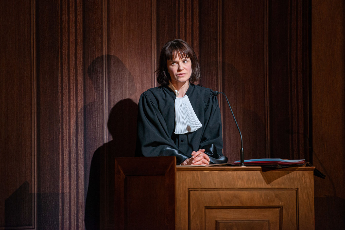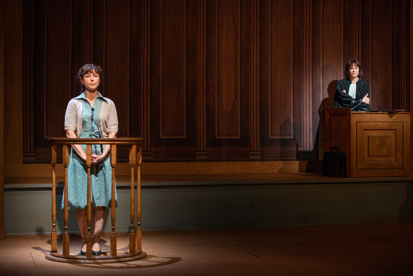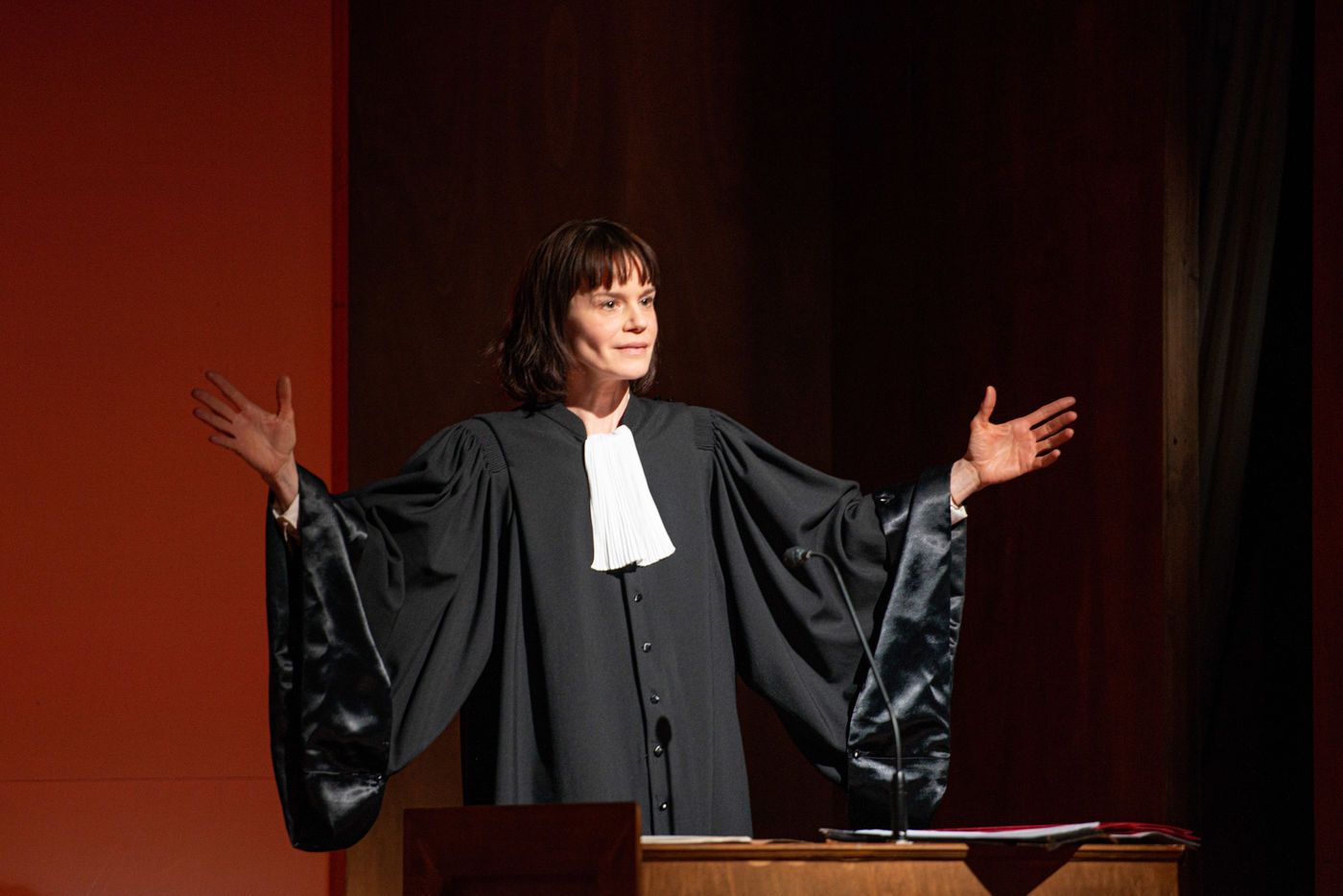 HORS LA LOI, written and directed by Pauline Bureau, set design by Emmanuelle Roy at the Vieux Colombier de la Comédie-Française, from May 24th to July 7th, 2019, with Claire de La Rüe du Can, Coraly Zahonero, Françoise Gillard, Martine Chevallier, Martine Chevallier, Sarah Brannens, Daniele Lebrun, Laurent Natrella and Alexandre Pavloff.