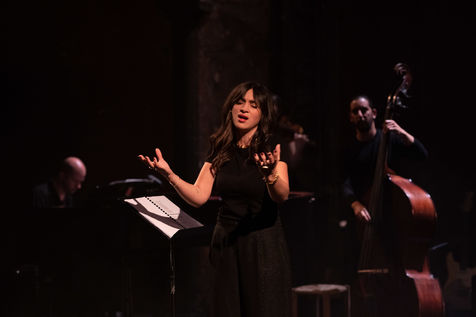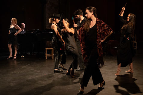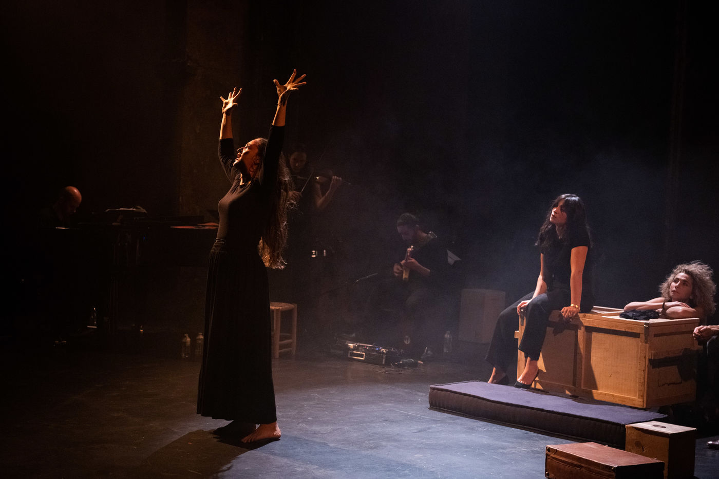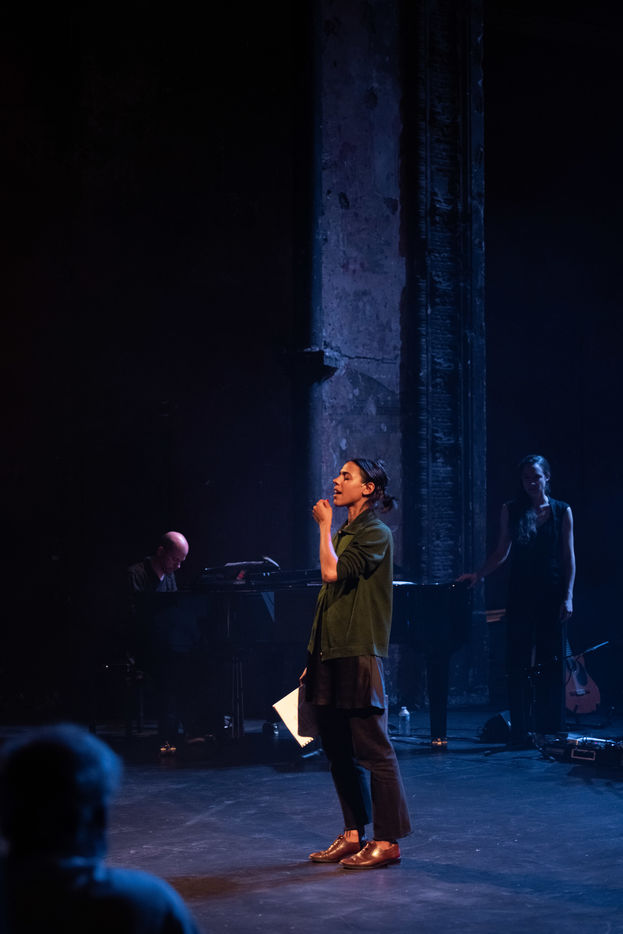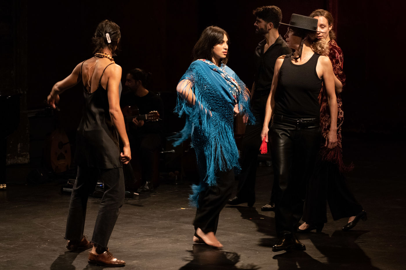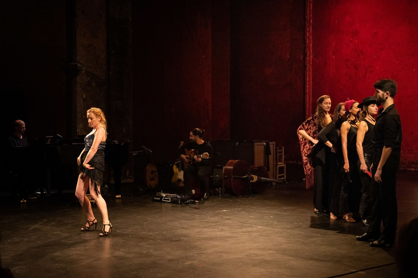France, Paris, 2020-10-25. Andando, piece de theatre, mise en scene par Daniel San Pedro aux Bouffes du Nord. Avec Aymeline Alix, Audrey Bonnet, Zita Hanrot, Camélia Jordana, Estelle Meyer, Johanna Nizard, Liv Heym, Pascal Sangla et M hamed el Menjra.
