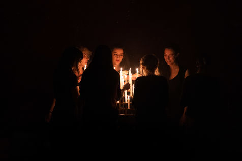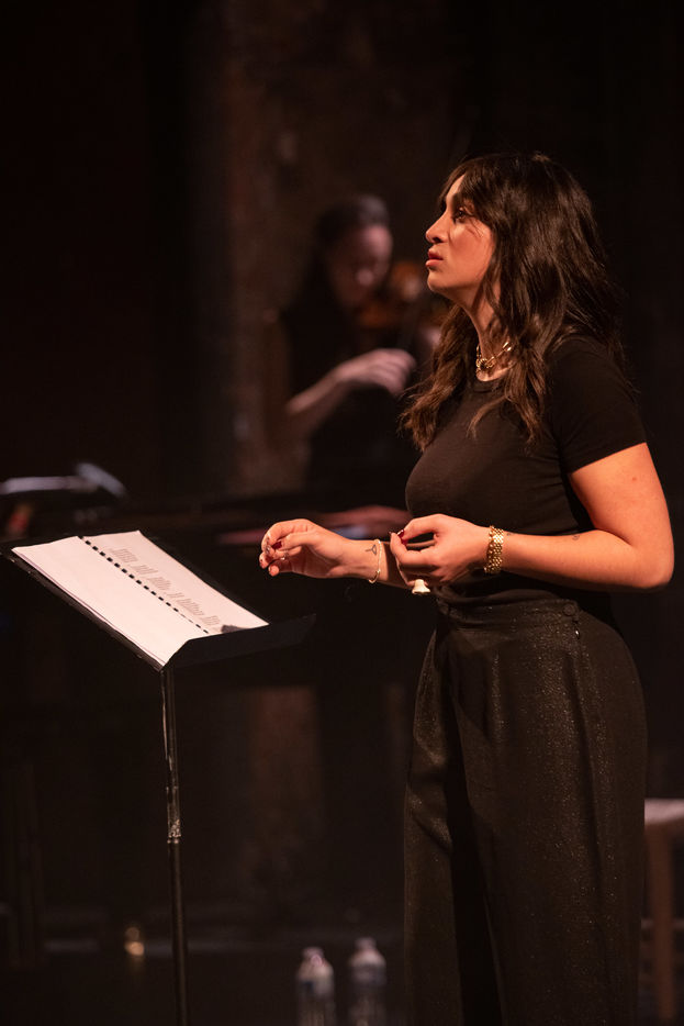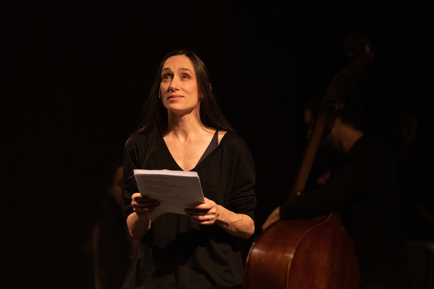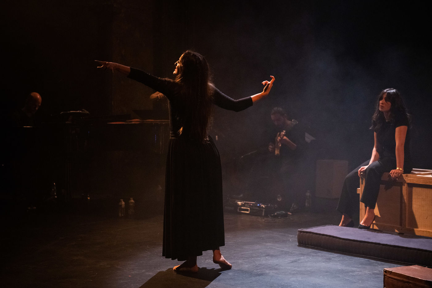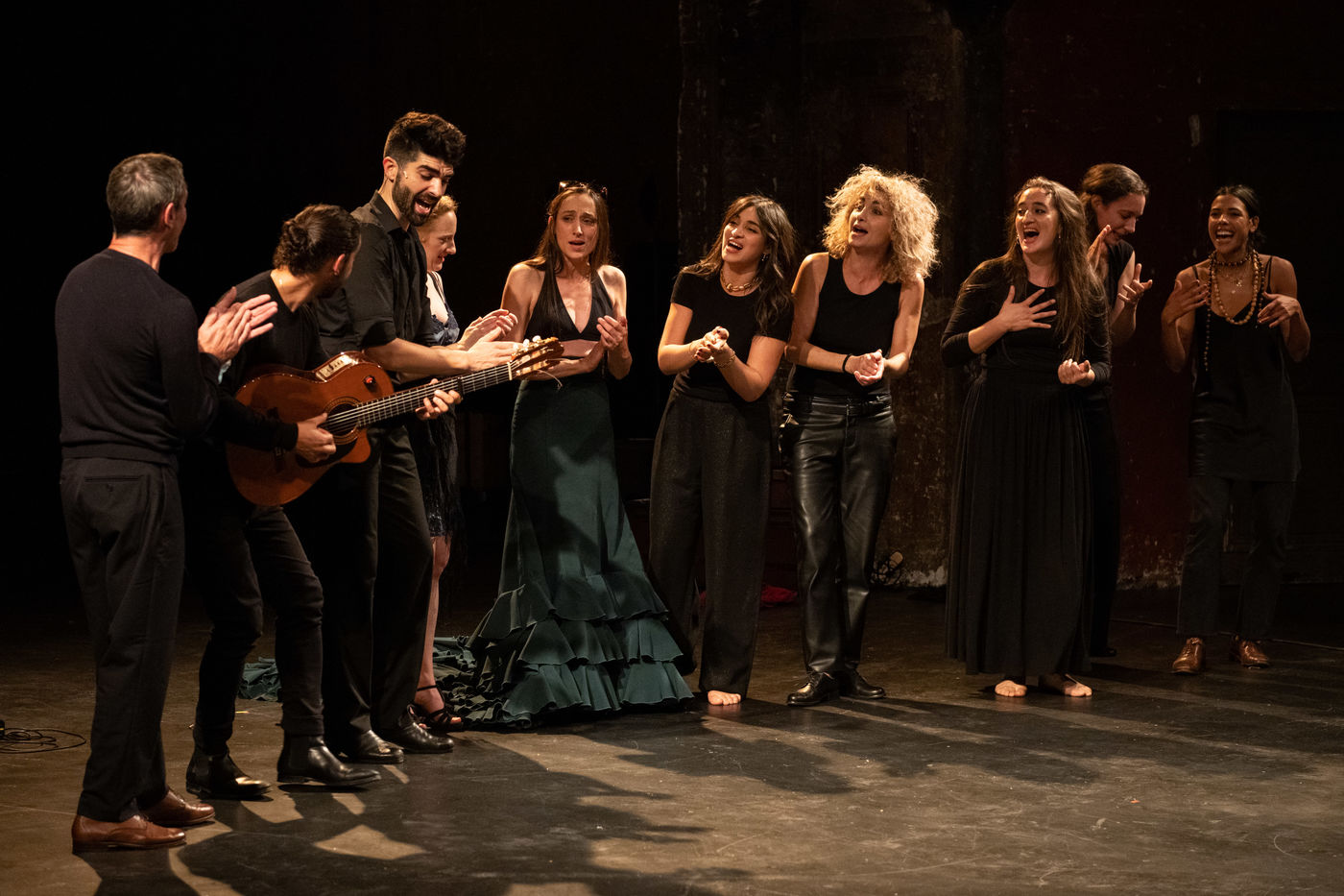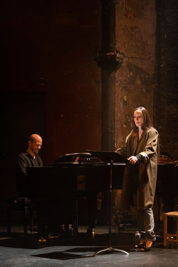 France, Paris, 2020-10-25. Andando, piece de theatre, mise en scene par Daniel San Pedro aux Bouffes du Nord. Avec Aymeline Alix, Audrey Bonnet, Zita Hanrot, Camélia Jordana, Estelle Meyer, Johanna Nizard, Liv Heym, Pascal Sangla et M hamed el Menjra.