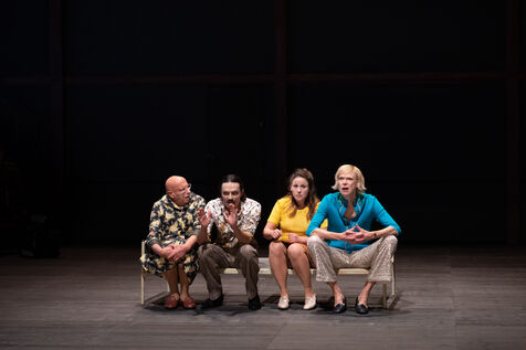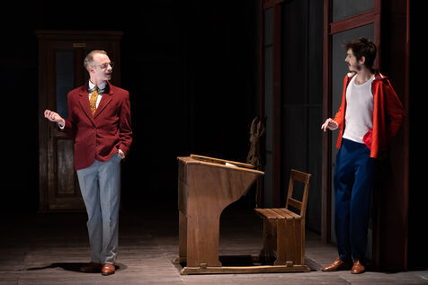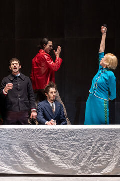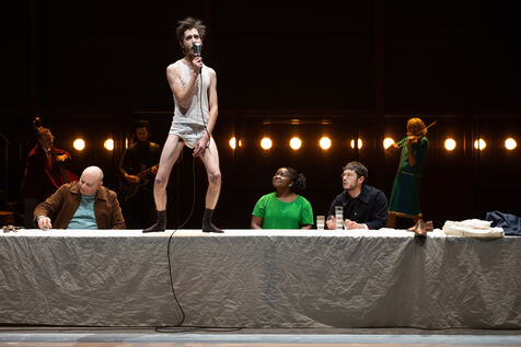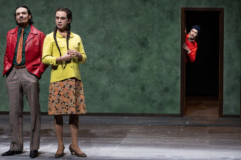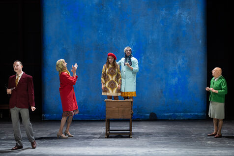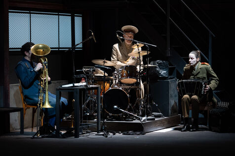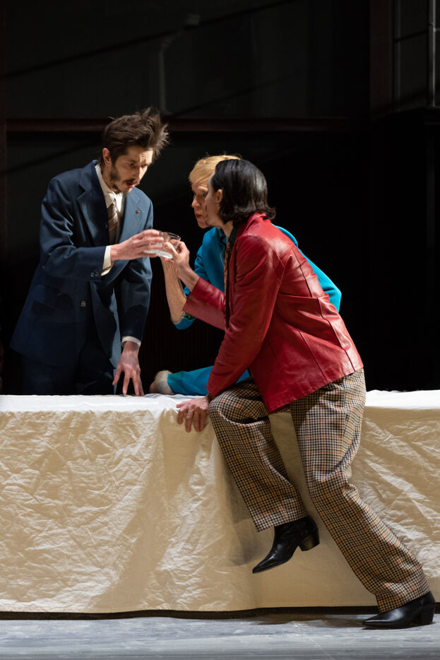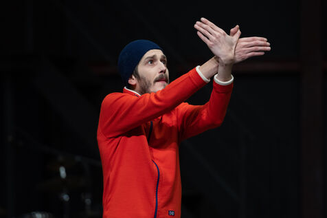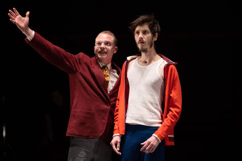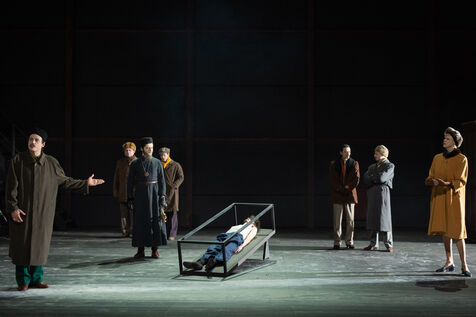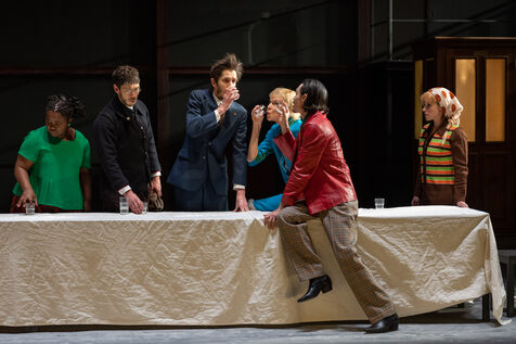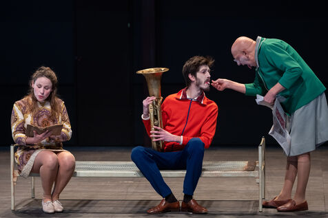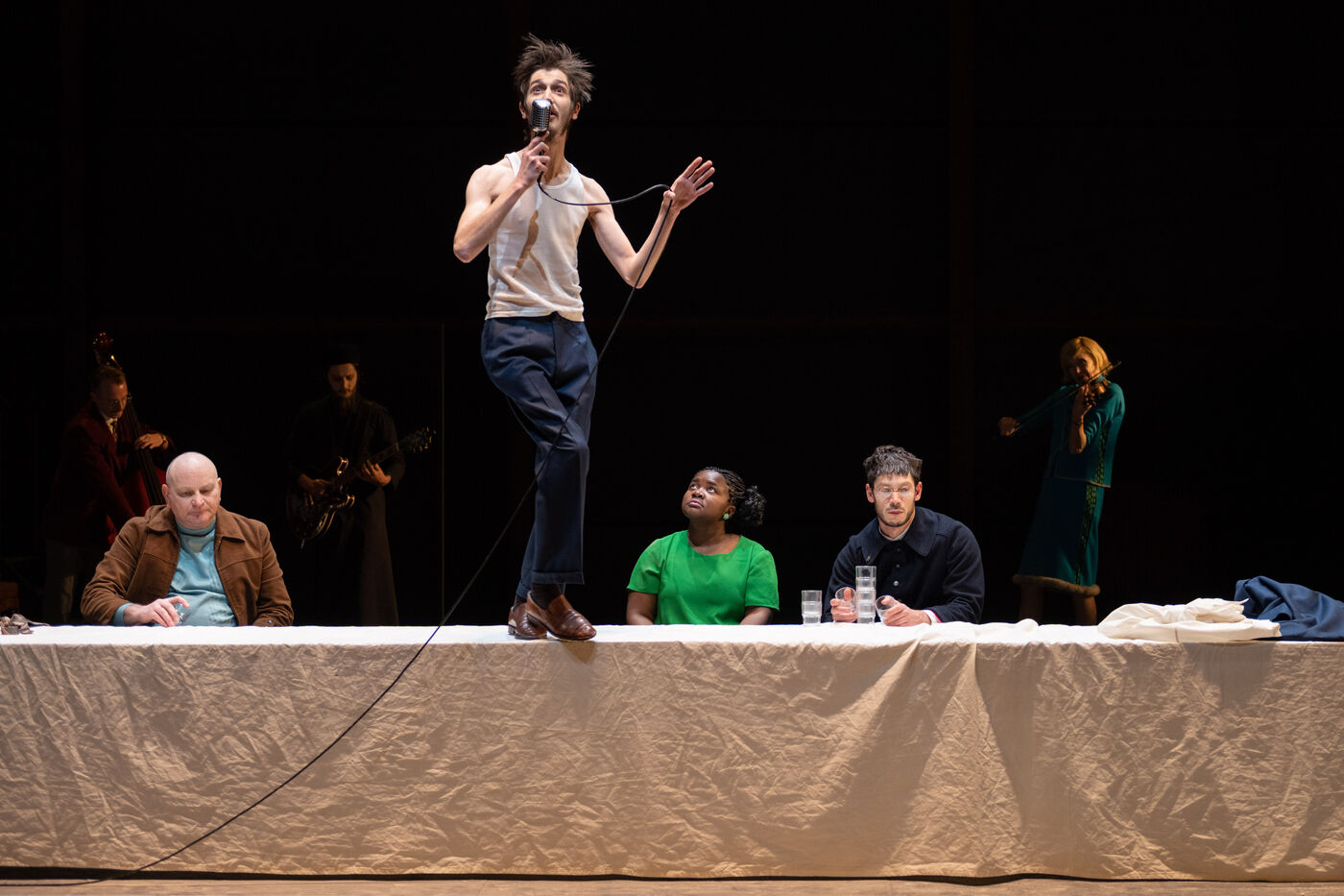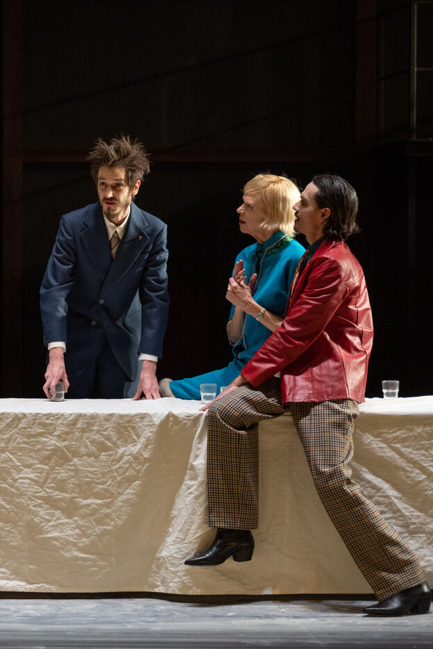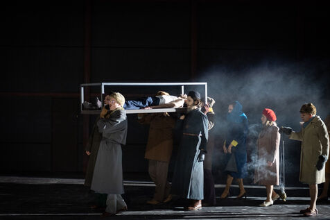 TEATER - LE SUICIDÉ, VAUDEVILLE SAUVIÉTIQUE of Nicolaï Erdman directed by Jean Bellorini, at the Theatre National Populaire, december 2022. With François Deblock, Mathieu Delmonté, Clément Durand, Anke Engelsmann, Gérôme Ferchaud, Julien Gaspar-Oliveri, Jacques Hadjaje, Clara Mayer, Liza Alegria Ndikita, Marc Plas, Antoine Raffalli, Matthieu Tune, Damien Zanoly and Tatiana Frolova.