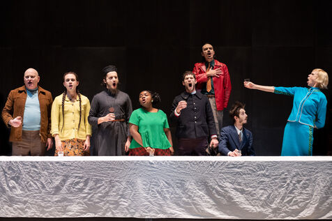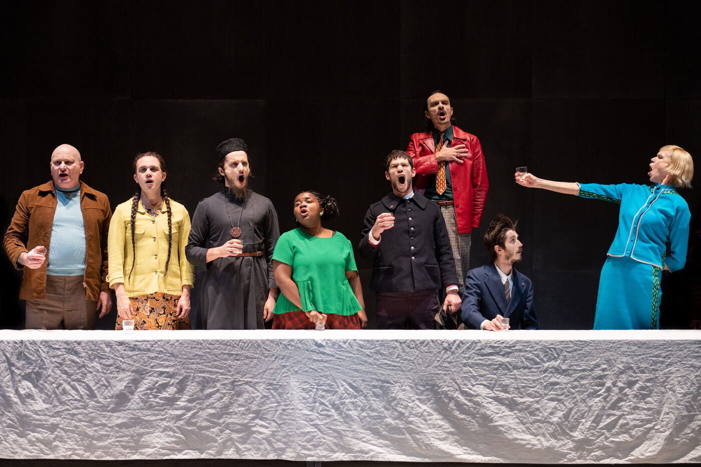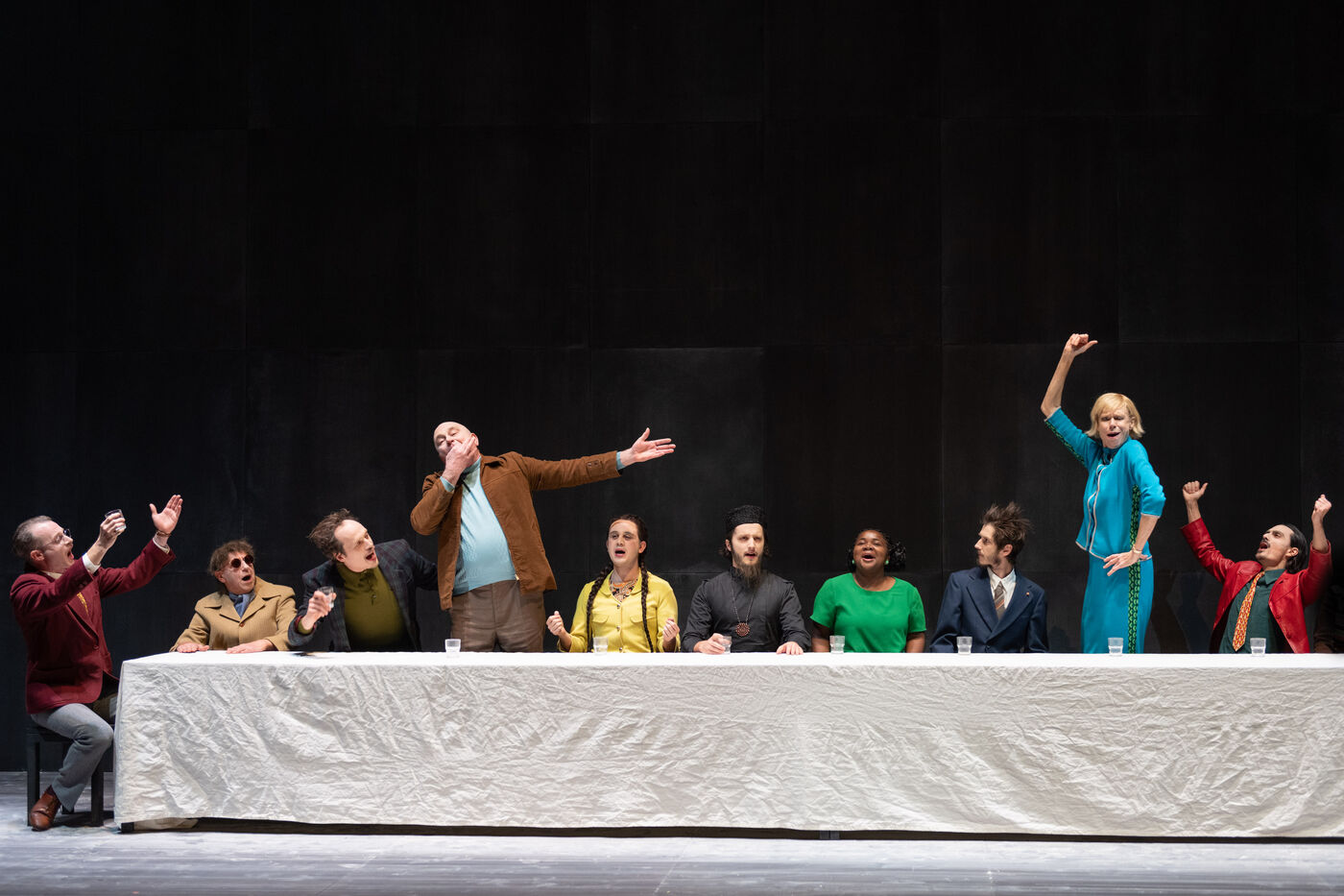 THEATRE - LE SUICIDÉ, VAUDEVILLE SAUVIÉTIQUE de Nicolaï Erdman, mise en scene par Jean Bellorini, au Theatre National Populaire, decembre 2022. Avec François Deblock, Mathieu Delmonté, Clément Durand, Anke Engelsmann, Gérôme Ferchaud, Julien Gaspar-Oliveri, Jacques Hadjaje, Clara Mayer, Liza Alegria Ndikita, Marc Plas, Antoine Raffalli, Matthieu Tune, Damien Zanoly et Tatiana Frolova.