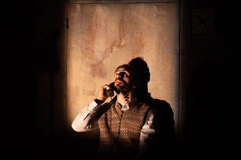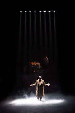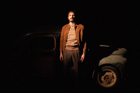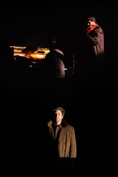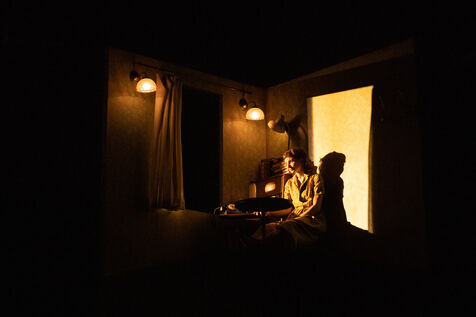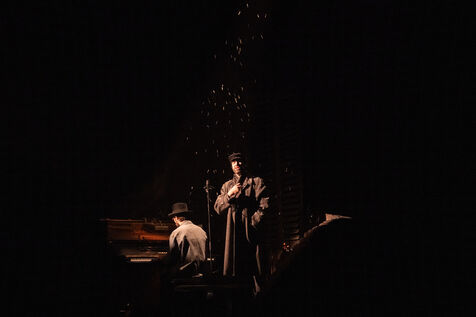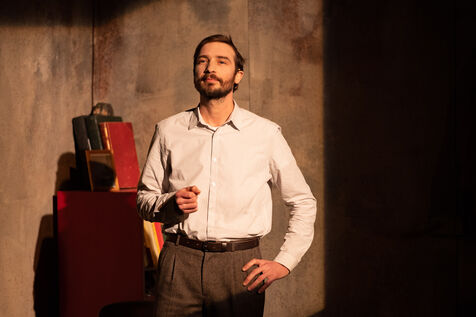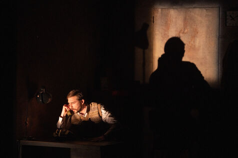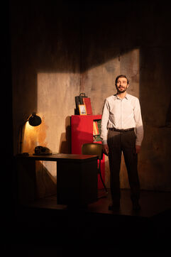 THEATRE - L'ESPE?CE HUMAINE OU L'INIMAGINABLE, based on La Douleur by Marguerite Duras, Autour d'un effort de me?moire by Dionys Mascolo and L'Enfer de Treblinka by Vassili Grossman, directed and set design by Mathieu Coblentz at the TNP theatre national populaire de Villeurbanne-Lyon at the Petit the?a?tre, salle Jean-Bouise, in January 2023 with Mathieu Alexandre, Florent Chapellie?re, Vianney Ledieu, Camille Voitellier and Jo Zeugma.