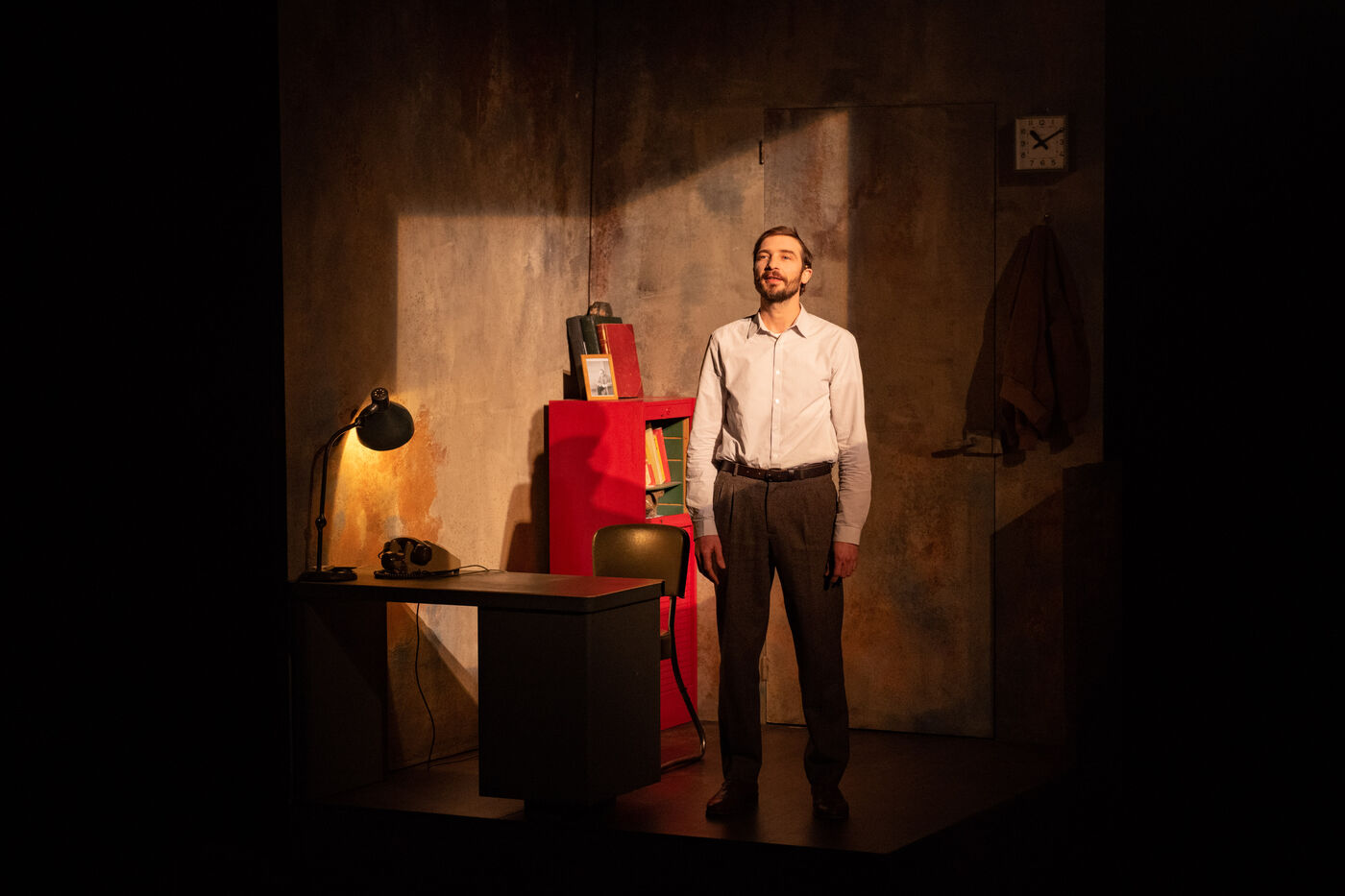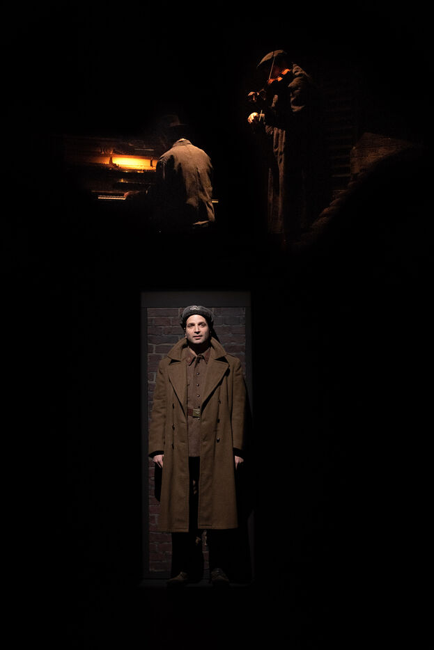 THEATRE - L?ESPE?CE HUMAINE OU L'INIMAGINABLE, d?apre?s La Douleur de Marguerite Duras, Autour d?un effort de me?moire de Dionys Mascolo et L?Enfer de Treblinka de Vassili Grossman, mise en sce?ne et sce?nographie de Mathieu Coblentz au TNP, theatre national populaire de Villeurbanne-Lyon au Petit the?a?tre, salle Jean-Bouise, en janvier 2023 avec Mathieu Alexandre, Florent Chapellie?re, Vianney Ledieu, Camille Voitellier et Jo Zeugma.
