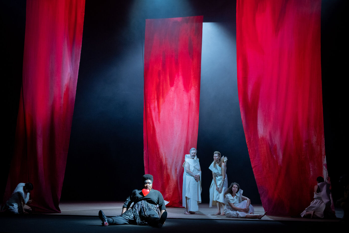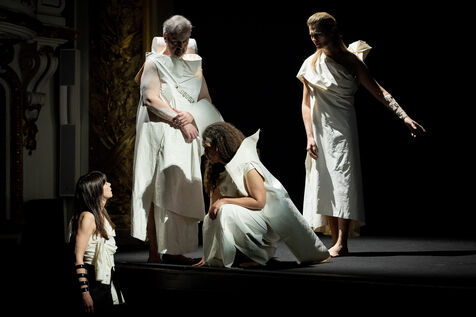 TEATER - MEDEE after Euripides, adapted and directed by Lisaboa Houbrechts, Salle Richelieu of the Comédie Française, May 10, 2023. With Serge Bagdassarian, Bakary Sangaré, Suliane Brahim, Didier Sandre, Anna Cervinka, Élissa Alloula, Marina Hands, Séphora Pondi, Léa Lopez, Sanda Bourenane, Yasmine Haller and Ipek Kinay.