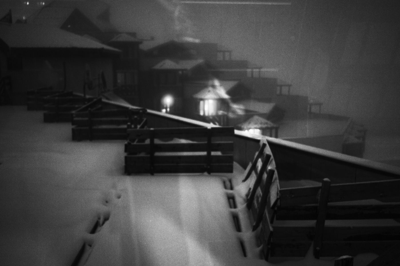 Dans un moment de latence, la neige devient cendre, la brume enveloppe et transforme ce qu'elle touche comme dans un rêve obscur, effaçant ce monde tel qu'on le connait pour ne laisser place qu'à l'incertitude.