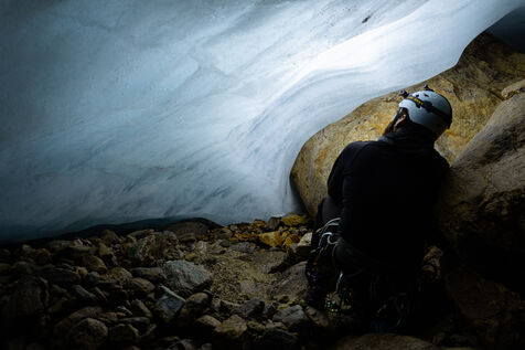 On November 2, 2024, as part of a documentation project on glacial moulins in the Alps, we carried out a descent beneath the Saint-Sorlin Glacier in the Grandes Rousses range. After rappelling down several ice shafts, we reached the glacier bed, where rock and ice meet, an underground landscape sculpted by flowing water.