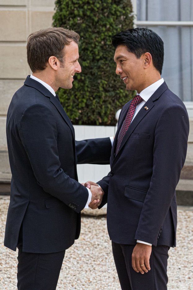 LE PRÉSIDENT MACRON REÇOIT LE PRÉSIDENT RAJOELINA À L'ÉLYSÉE