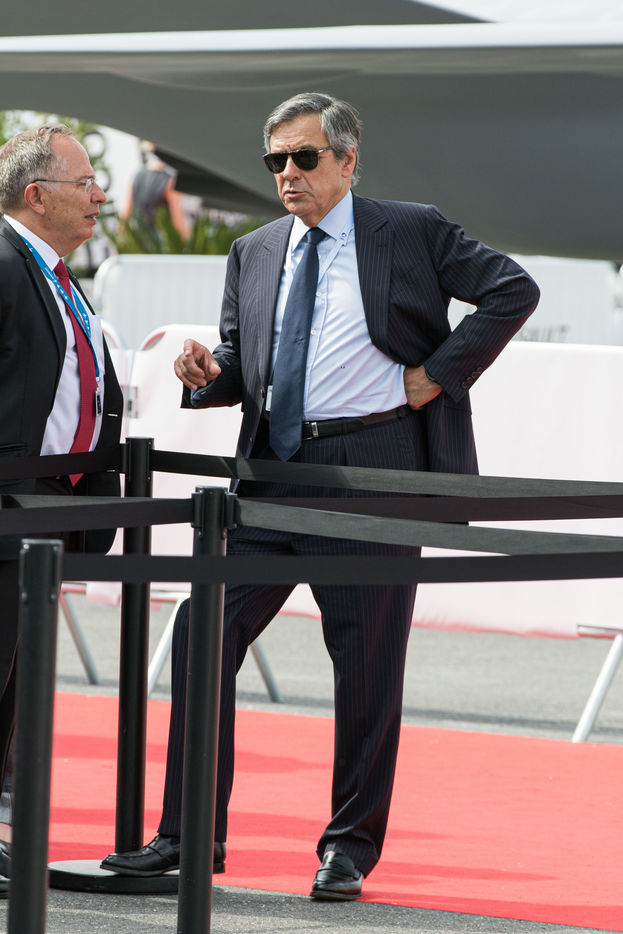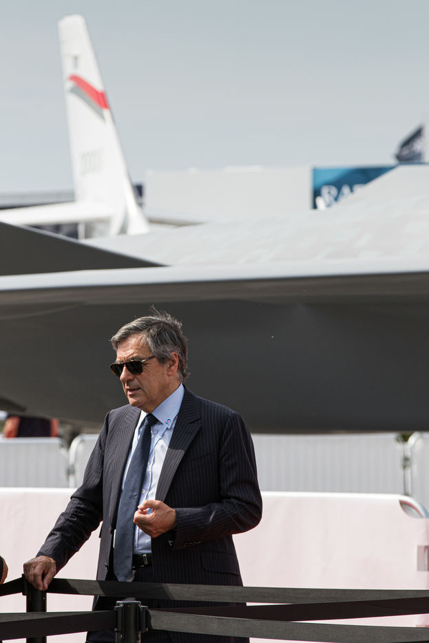 L'ancien Premier ministre français et candidat aux élections présidentielles 2017, François FILLON au 53e Salon du Bourget (SIAE, Salon International de l'Aéronautique et de l'Espace) au Bourget (Seine-Saint-Denis) près de Paris, France, le 18 Juin 2019.