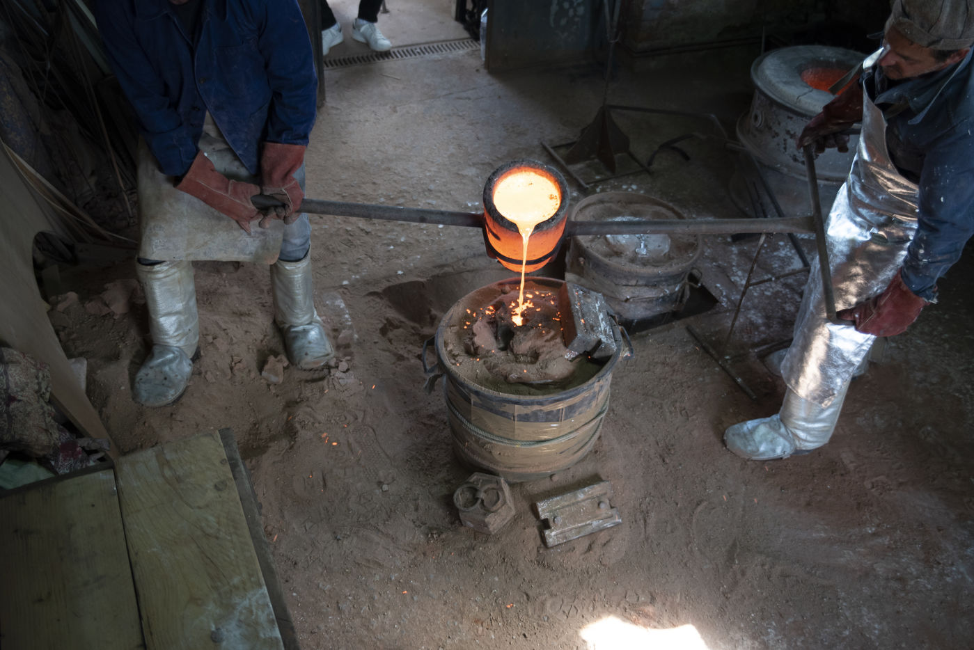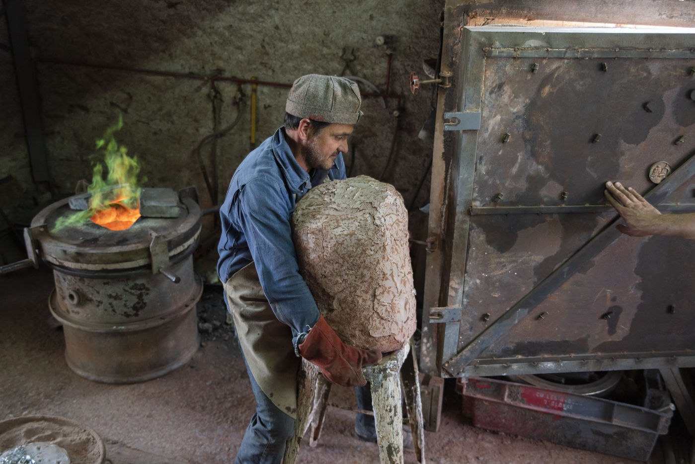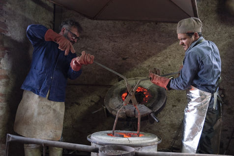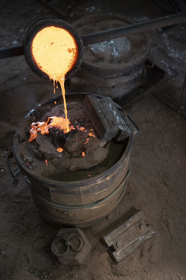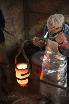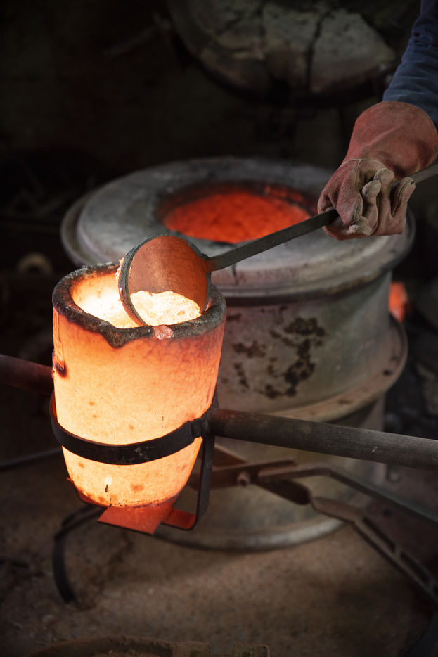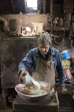 Julien Perrier est sculpteur dans le Maine et Loire. Il a un atelier de fonderie. Certaines de ses sculptures sont en bronze. Voici une série sur la coulée du bronze dans un moule en terre.