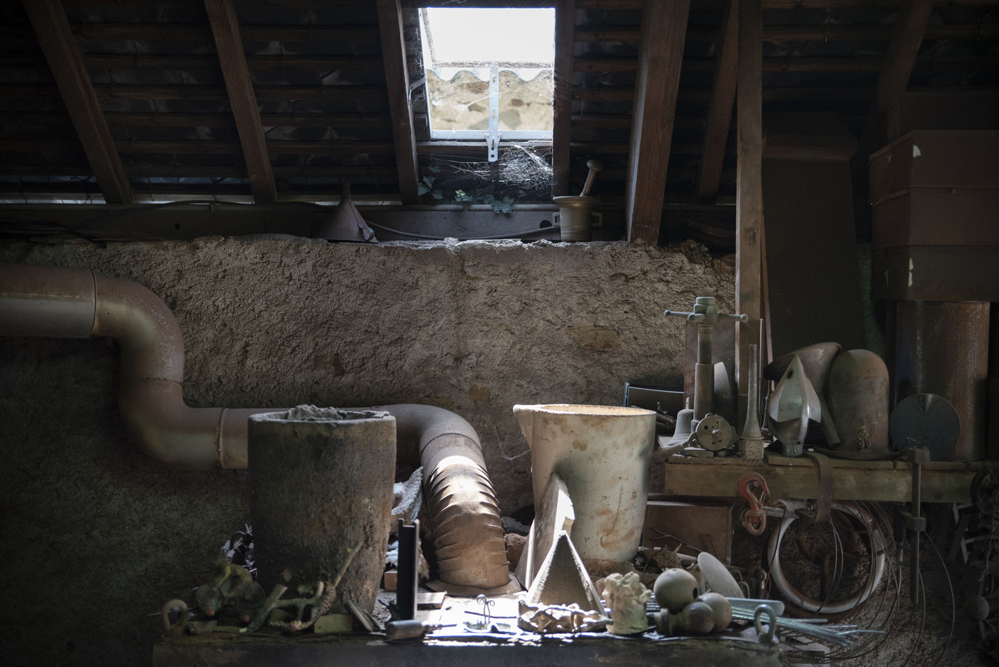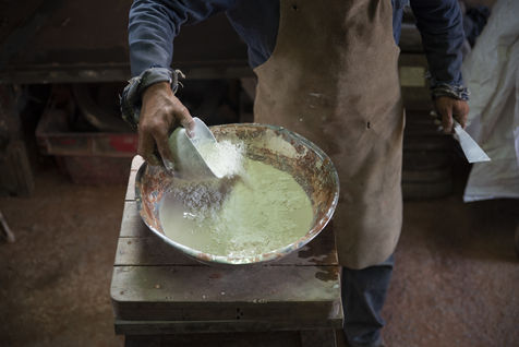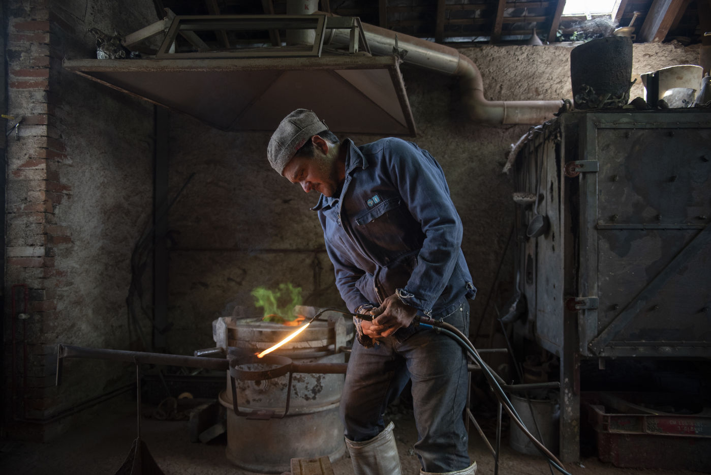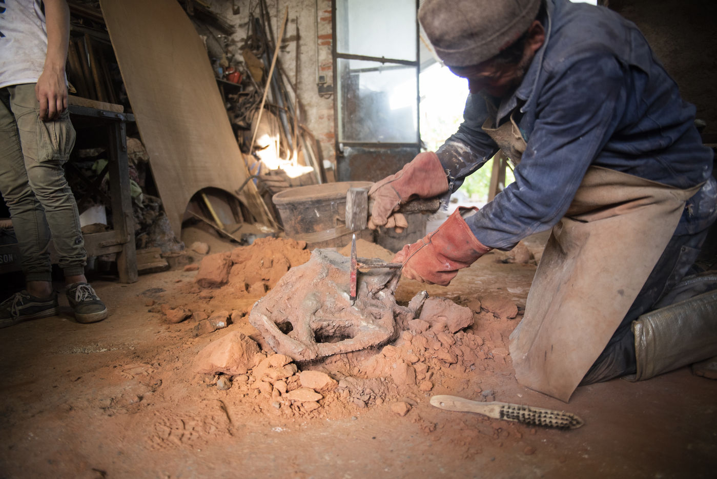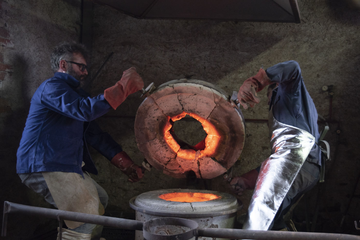 Julien Perrier est sculpteur dans le Maine et Loire. Il a un atelier de fonderie. Certaines de ses sculptures sont en bronze. Voici une série sur la coulée du bronze dans un moule en terre.