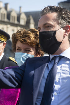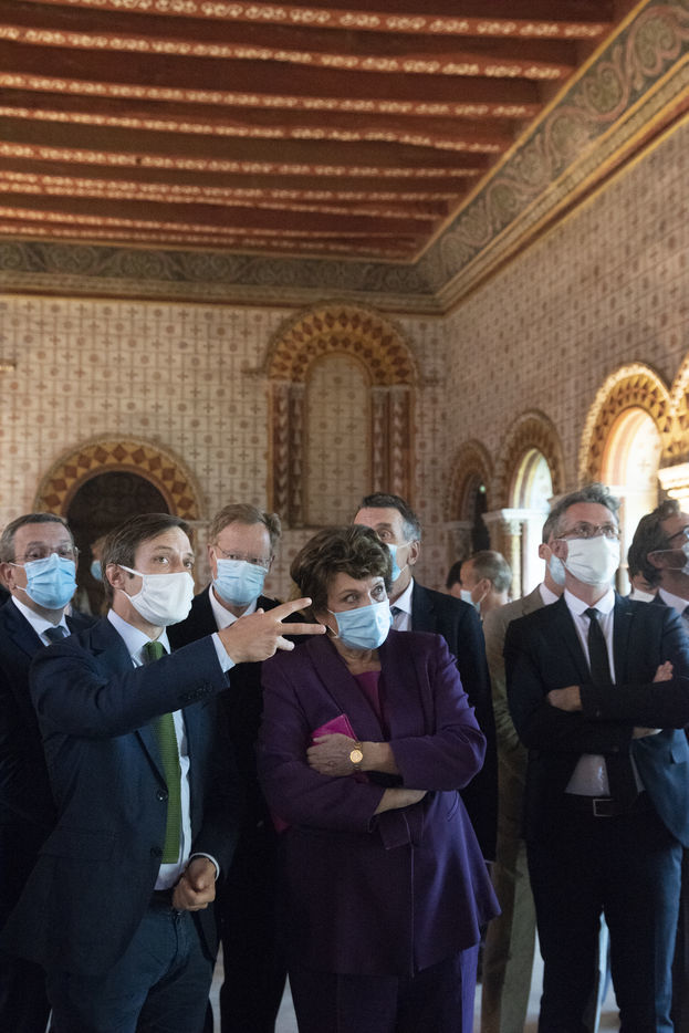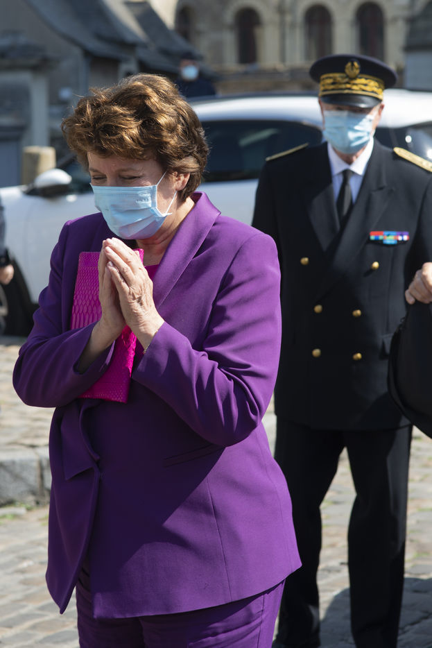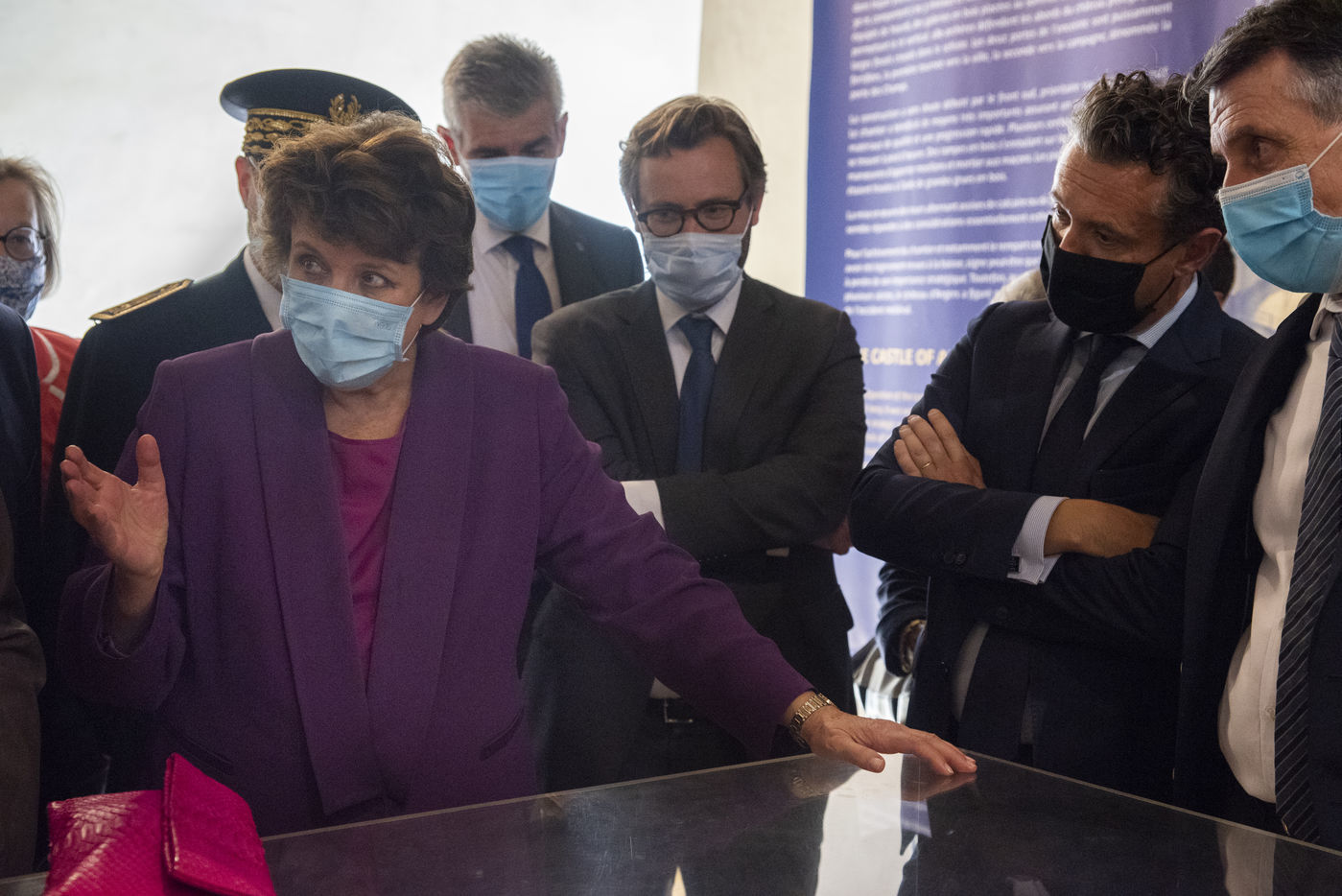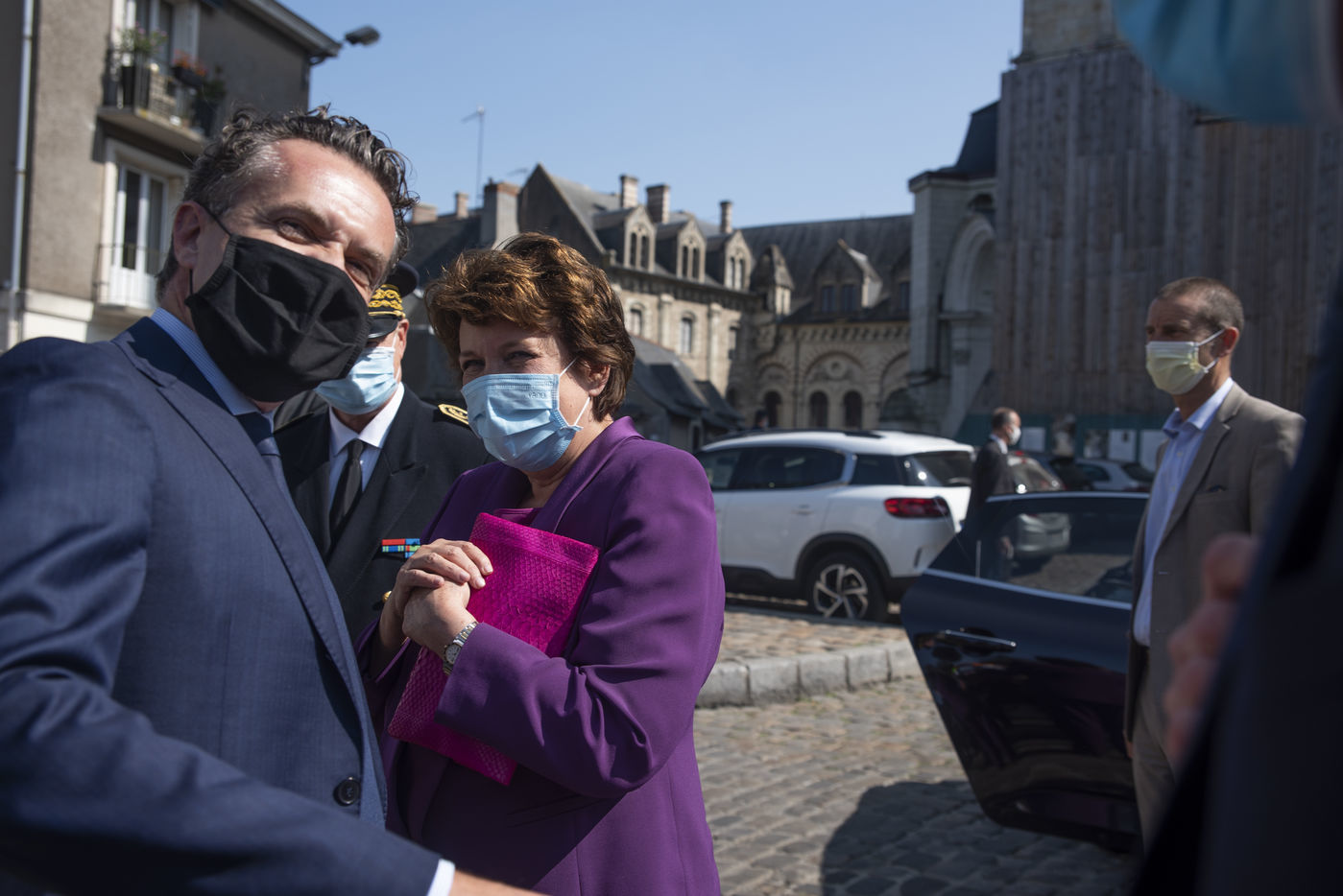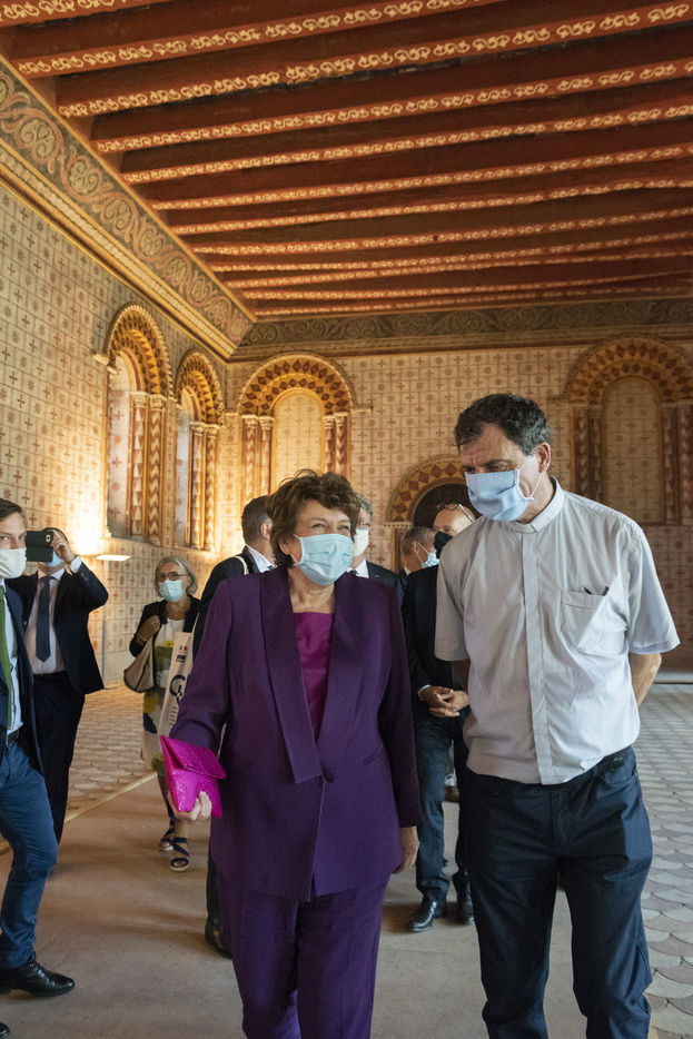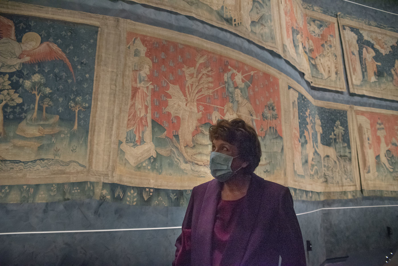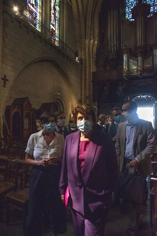 Roselyne Bachelot, Minister of Culture, came to visit Angers Cathedral and Angers Castle accompanied by the mayor, Christophe Bechu.