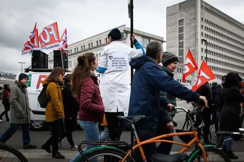 Tuesday, March 7, 2023. the unions wanted "a France at a standstill", a new stage for the mobilization against the pension reform. This date marks the start of a renewable strike in several sectors to challenge the government's bill. In Nantes (Loire-Atlantique), the demonstration started from the water mirror to the Machines de l'Ile. According to the Unions, 75,000 people marched in the streets while the Prefecture of Loire-Atlantique announces 30,000 demonstrators.