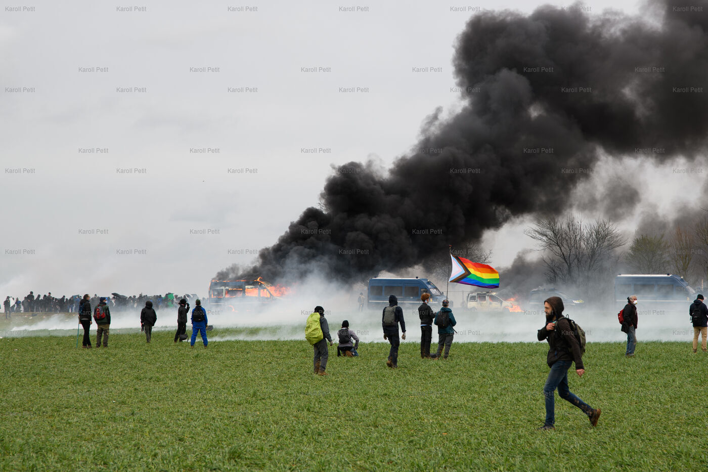 Today was a rally against the construction project of mega basins in Saint Soline in New Aquitaine. Twenty thousand demonstrators according to the organizers, They came to defend water, they came to protest against the privatization of water. The forces of the order were present, they were three thousand with squad and water truck. There were real clashes, the toll of the injured is heavy, three people in absolute emergency on the side of the demonstrators and two in absolute emergency on the side of the police. The number of relative injuries is not yet fixed.