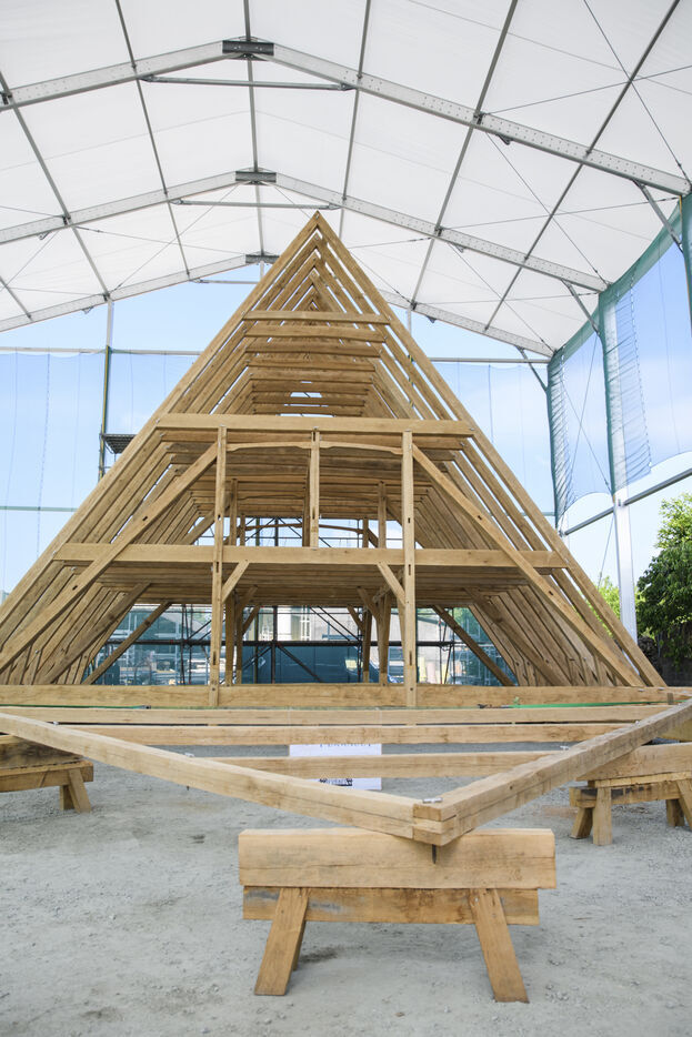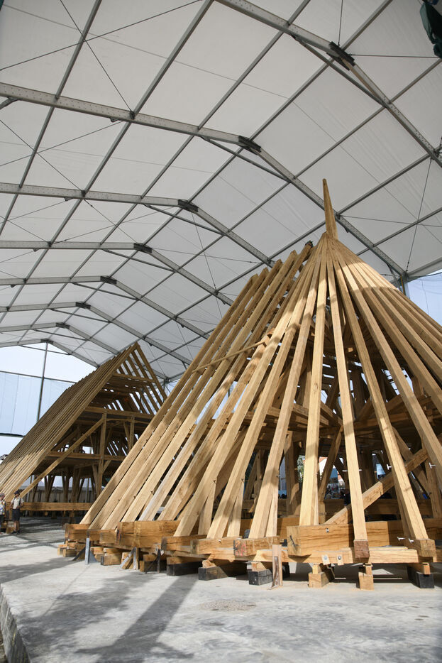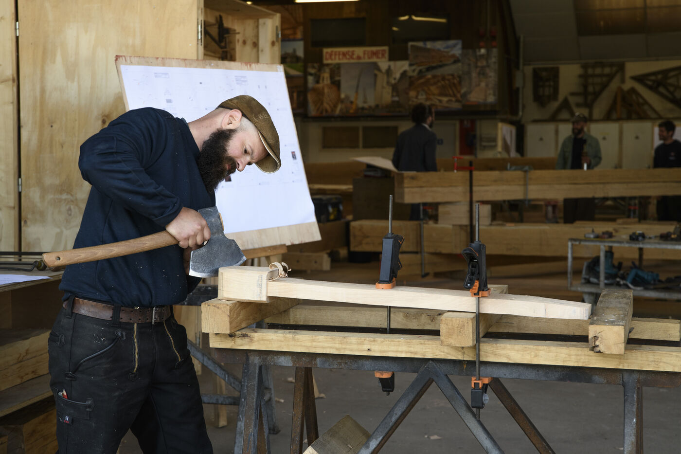 Aux Ateliers Perrault à Saint-Laurent-de-la-Plaine dans le Maine-et-Loire, des équarrisseurs ont fabriqué la nouvelle charpente de Notre Dame de Paris. Travail de plus d'un an entre l'équarrissage et le montage.