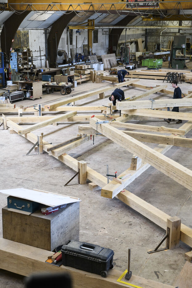 At the Ateliers Perrault in Saint-Laurent-de-la-Plaine in Maine-et-Loire, knackers have manufactured the new framework of Notre Dame de Paris. Work lasting more than a year between the squaring and the assembly.