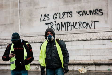Thousands of Yellow vests protesters (Gilets Jaunes) were today on Champs Elysees avenue for the second time. The confrontation between demonstrators and the police force was very violent at Charles de Gaulle Etoile. Paris, December 1, 2018.