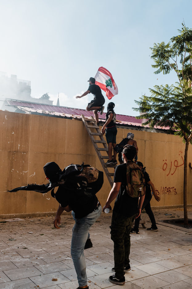 After the deadly blast of August 4 that devastated the capital, thousands of demonstrators gathered in Martyrs Square to shout their revolt and demand the resignation of the government. Violent clashes took place between the demonstrators and the riot police. Beirut, Saturday, August 8, 2020.
