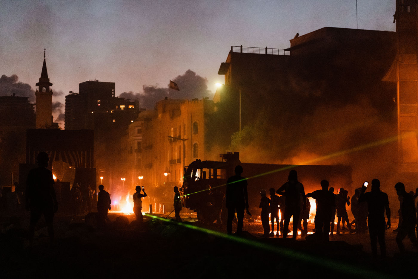 Après l'explosion meurtrière du 4 août qui a dévasté la capitale, des milliers de manifestants se sont rassemblés place des Martyrs pour crier leur révolte et demander la démission du gouvernement. De violents affrontements ont eu lieu entre les manifestants et la police anti émeute. Beyrouth, samedi 8 aout 2020.