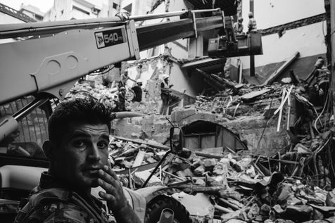 For almost 3 days, the Chilean rescue team Topos cleared the rubble of a completely collapsed house in the Mar Mickhael area, searching for a survivor. Their dog, a specialist in human detection, had indeed marked several times the location on this site. The team of rescuers is also equipped with a scanner that detects possible survivors buried under the rubble by measuring the heat of the human body and the heartbeat. One month after the port explosion, 7 people are still missing. Lebanon, Beirut, September 4 & 5, 2020.