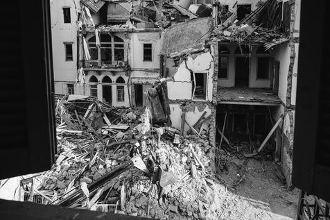 Pendant pres de 3 jours, l'equipe de sauvetage chilienne Topos a deblaye les decombres d'une maison totalement effondree dans le quartier de Mar Mickhael a la recherche d'un survivant. Leur chien, specialiste en detection humaine avait en effet marque a plusieurs reprise l'arret sur cet emplacement. L'equipe de sauveteurs est egalement dote d'un scanner qui repere les eventuels survivants ensevelis sous les decombres en mesurant la chaleur des corps humains et les battements de coeurs. Un mois apres l?explosion du port, 7 personnes sont toujours portees disparues. Liban, Beyrouth, 4 & 5 septembre 2020.