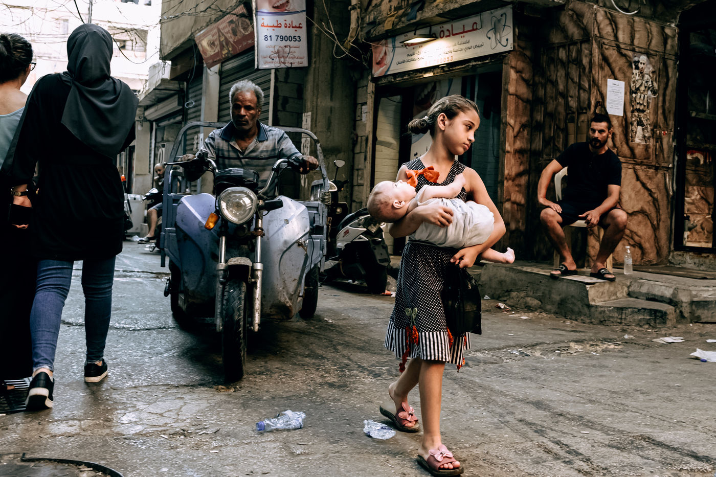 Street photography done from 2020/08/19 to 2021/03/21 in Shatila, Beirut, Lebanon. Lebanon, Beirut, Shatila. Shatila camp is now estimated to hold between 30000 to 40000 refugees on one square kilometer. Lebanon has been through multiple crises: economic and financial, popular uprising, political crisis and corruption, COVID-19, explosion of the port of Beirut. In addition, the country hosts nearly 880,000 Syrian refugees and 180,000 Palestinian refugees. These intertwined crises have impacted access to healthcare while increasing the health needs of the population.