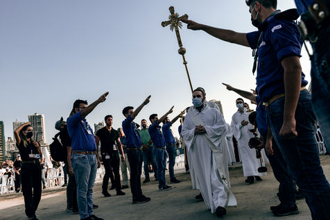 In the port area, an official ceremony for the families of those who died in the explosion was held. Anniversary of the double explosion in the port of Beirut that killed at least 235 people and injured more than 7,000 in 2020. A minute of silence was observed at 6:07pm to mark the moment of the detonation which at 6:08pm. After this tribute to the victims, the cortege moved towards the parliament. The Lebanese demanded the lifting of the immunity of the politicians in order to allow their audition in the investigation of the explosion. But also they denounce the corruption of the political class and the terrible economic crisis that Lebanon has been experiencing for almost 2 years. Lebanon, Beirut, 2021-08-04.