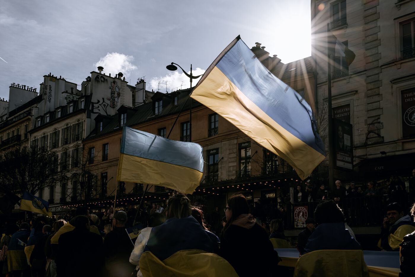 France, Paris, 2025-23-02. Demonstration to protest against Russia's full-scale invasion of Ukraine. After annexing Crimea in 2014, Russia began its special operation on February 24, 2022 to invade the country.