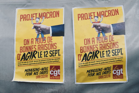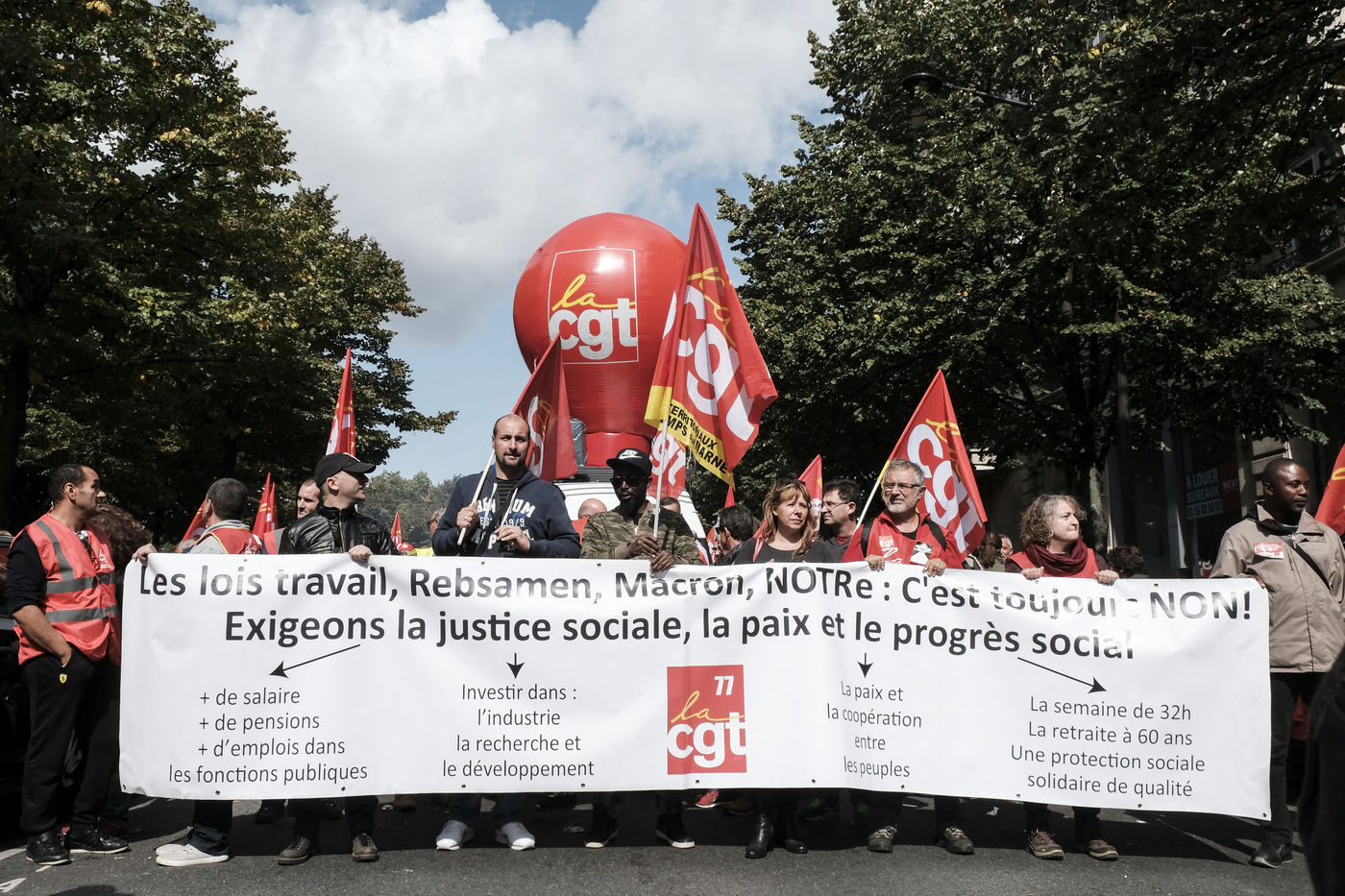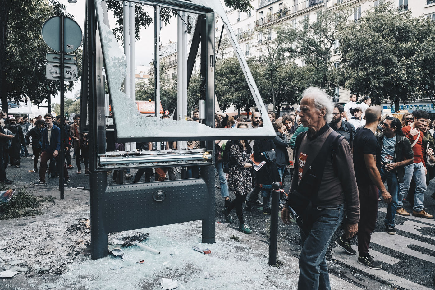 France, Paris, le mardi 12 septembre 2017. Manifestation contre la réforme du Code du Travail par ordonnances voulue par le Président Emmanuel Macron.