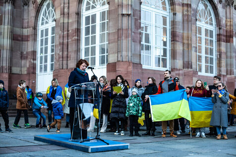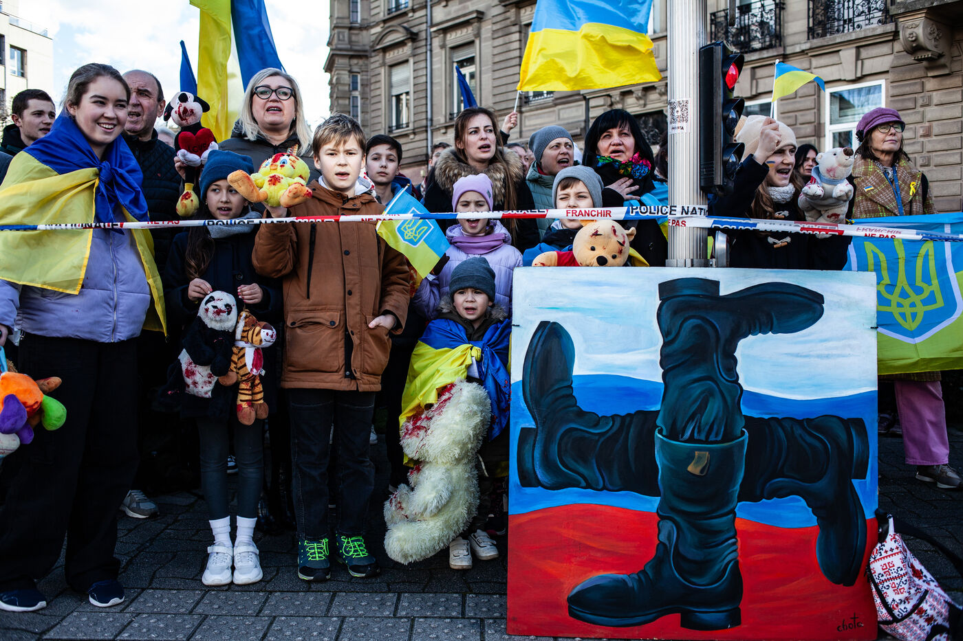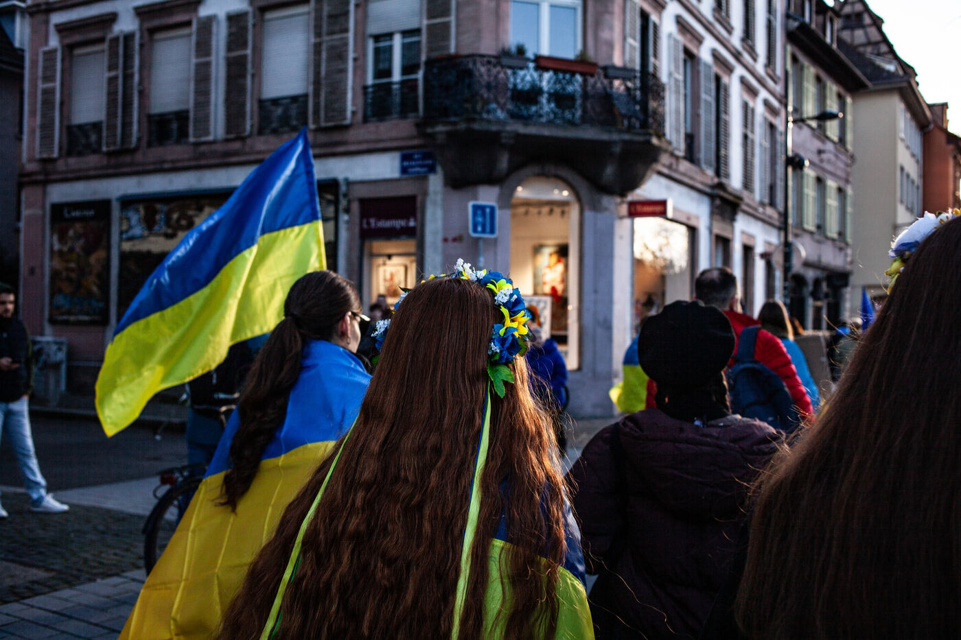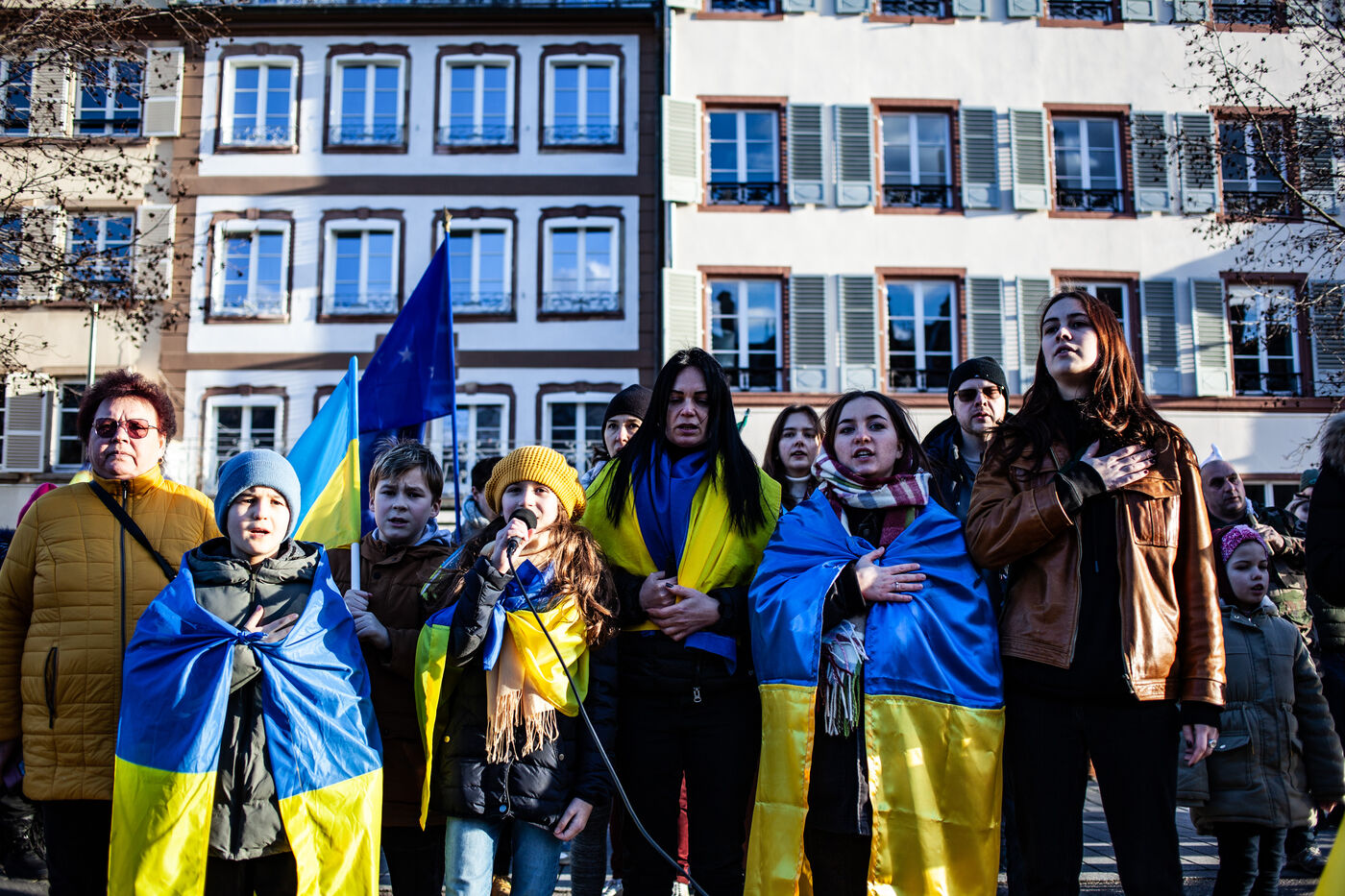 Près de 400 personnes, majoritairement des personnes issues de la diaspora ukrainienne, se sont rassemblées ce samedi à Strasbourg. Les manifestant.es qui se sont d'abord rassemblé.es devant le consulat russe à Strasbourg, se sont dirigé ensuite vers la Place du château, où une cérémonie de commémoration des victimes de la guerre en Ukraine s'est tenue.
