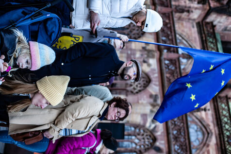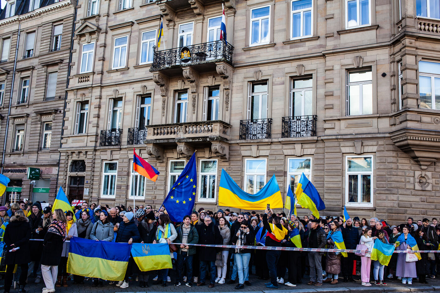 Nearly 400 people, mostly individuals from the Ukrainian diaspora, gathered this Saturday in Strasbourg. The demonstrators, who initially gathered in front of the Russian consulate in Strasbourg, then headed towards Place du Château, where a commemoration ceremony for the victims of the war in Ukraine took place.