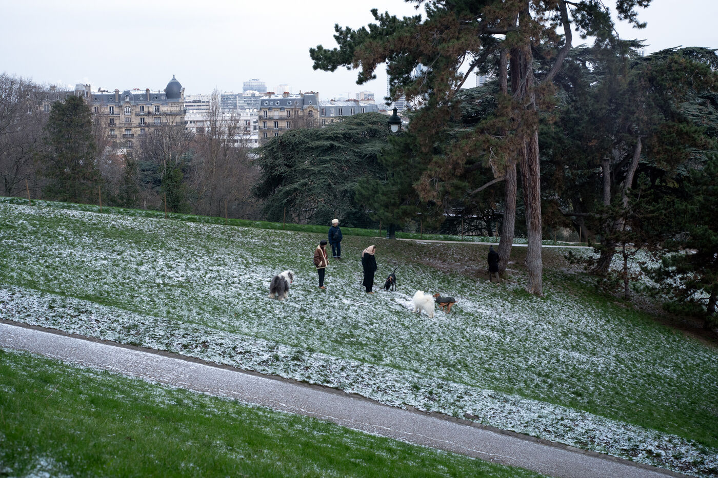 Cold snap in Paris : on the morning of January 9, the Buttes Chaumont were still covered in snow.