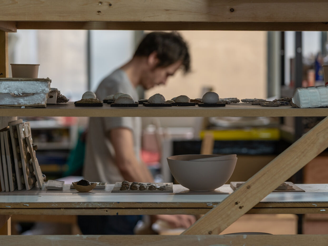 Portrait de l’artiste Xavier Orssaud dans son atelier