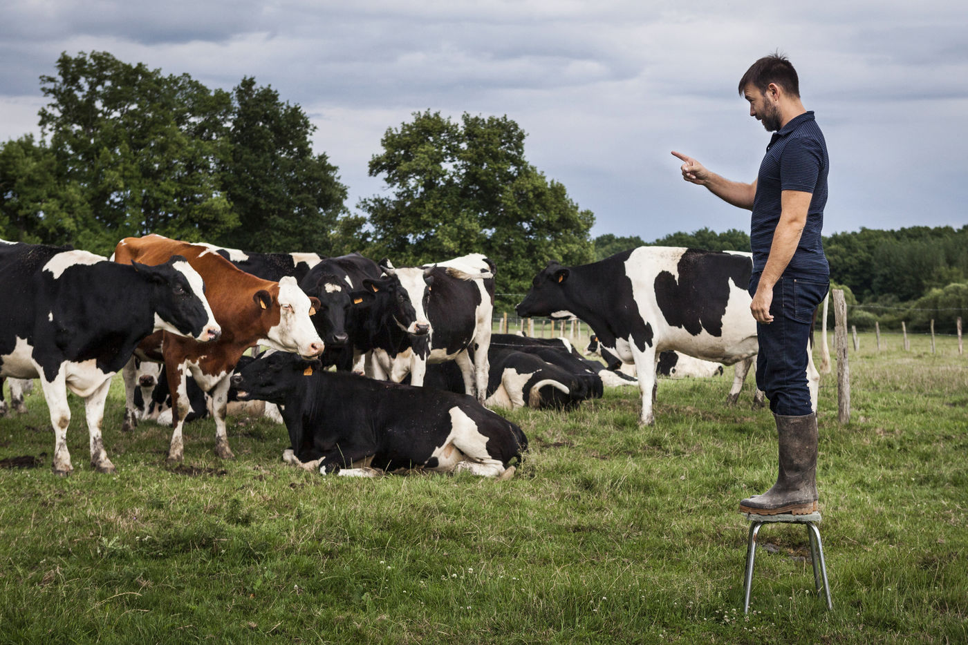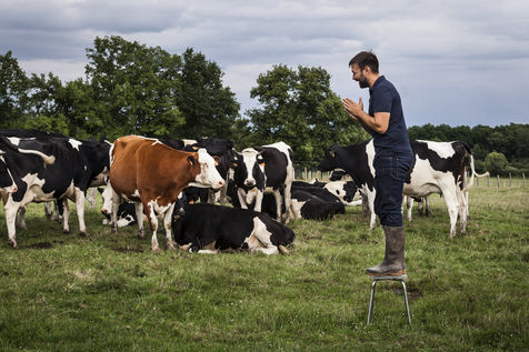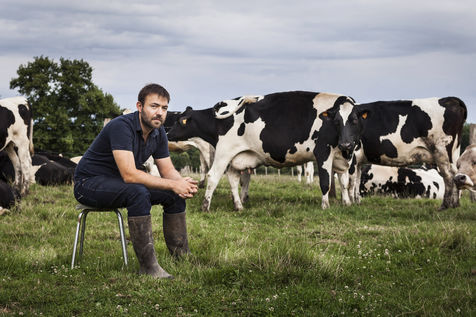 Hubert Charuel, réalisateur, sur la ferme de ses parents en Haute-Marne, où son premier long-métrage de fiction, Petit Paysan (août 2017), a été tourné. Droyes, France - 13 juillet 2017