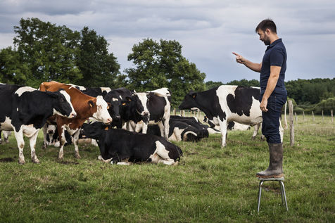 Hubert Charuel, director, on the farm of his parents in Haute-Marne, where his first feature film, Petit Paysan (August 2017), was filmed. Droyes, France - July 13, 2017
