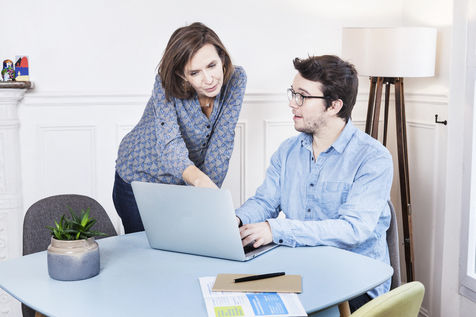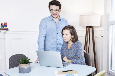 Mise en scène avec des comédiens de l'utilisation de l'espace client digital du compteur Linky d'Enedis, dans un appartement, à Paris (France). - 12 décembre 2016