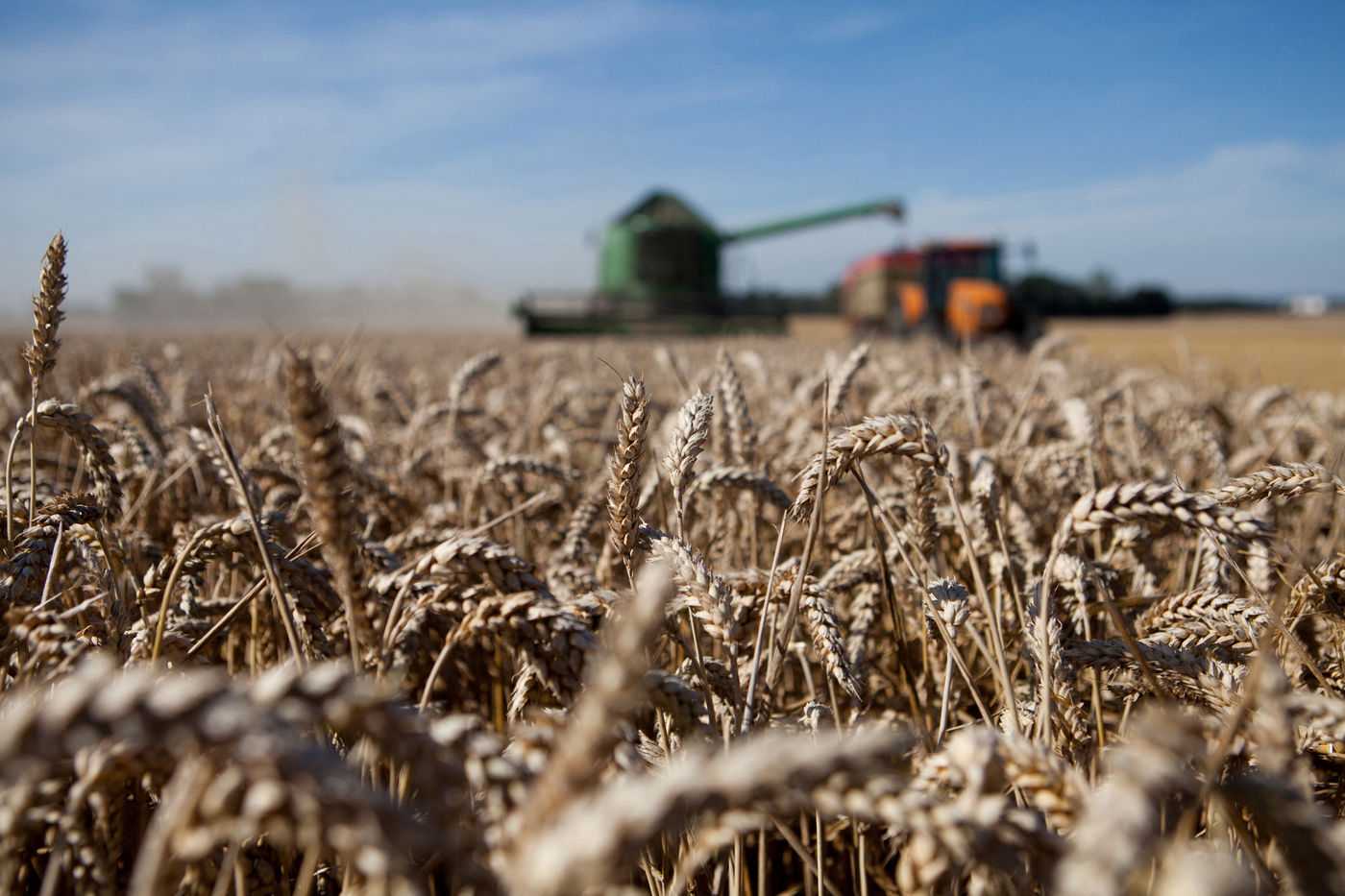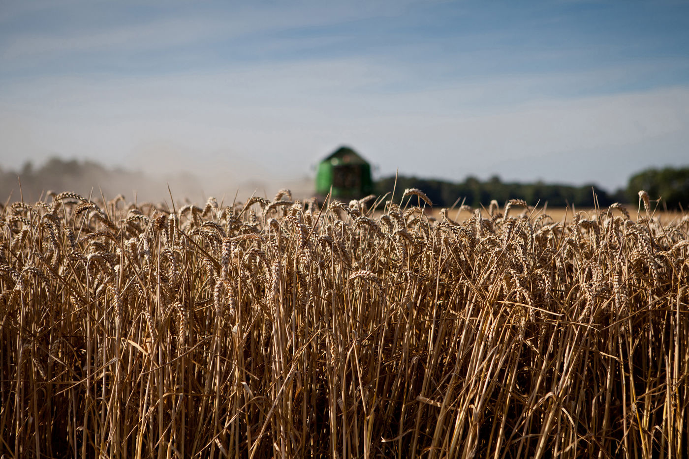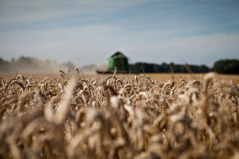 Images d'illustrations de la moisson de céréales dans des techniques agricoles mécanisées d'agriculture conventionnelle.