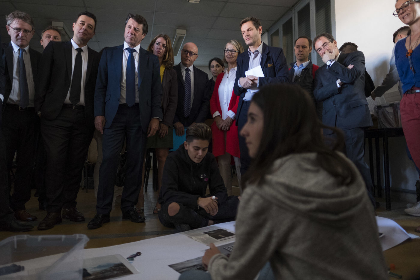 Movement of Françoise Nyssen, Minister of Culture, accompanied by the Mayor of Nice Christian Estrosi, in the former Mistral College in Arles. Discovery of three practical workshops on how to read the image.