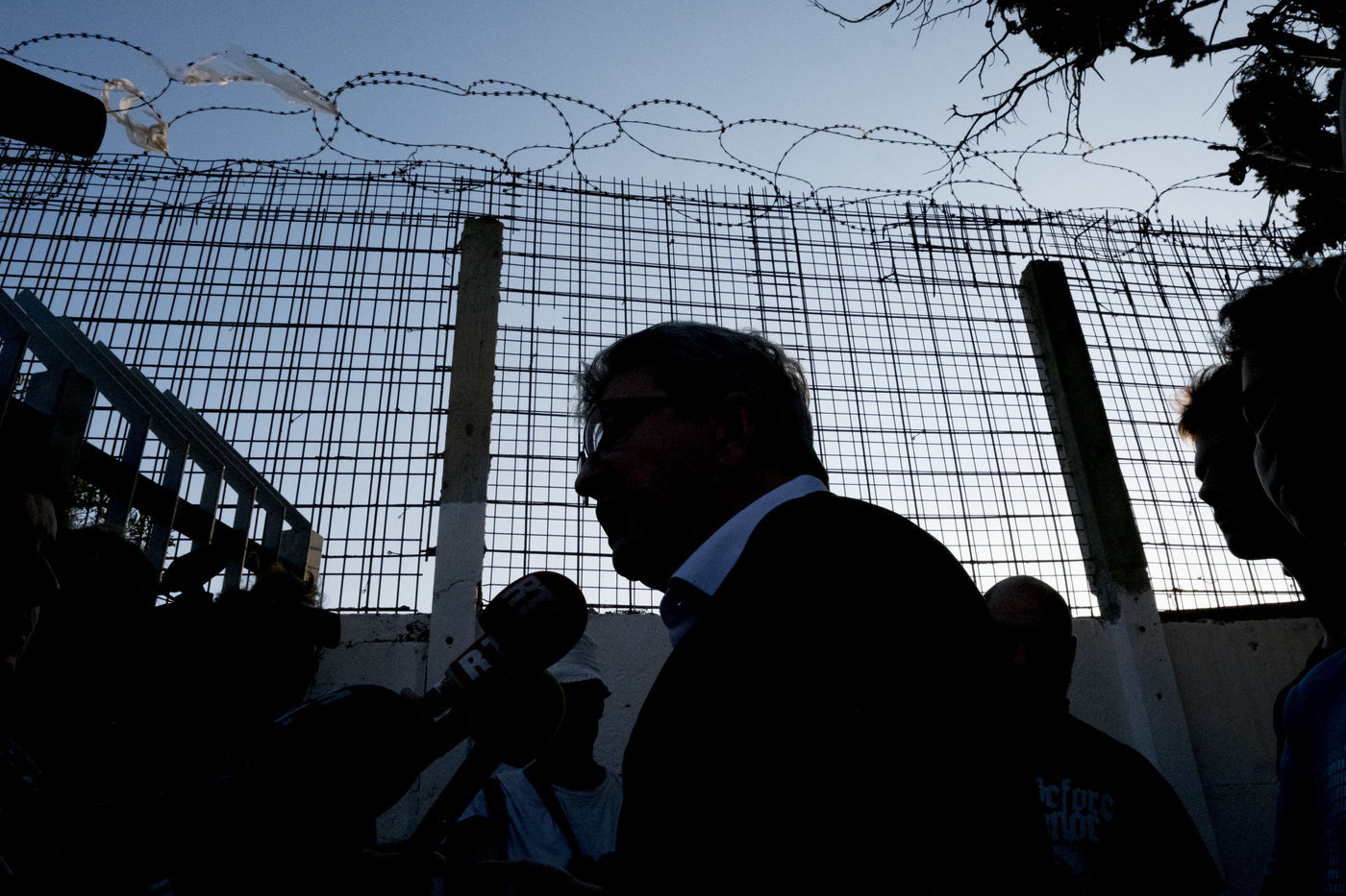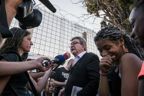 Jean-Luc Mélenchon, député France Insoumise, est venu voir les bénévoles de La France Insoumise et les parents d?élevées qui ont participer a un chantier de rénovation des espaces extérieurs du groupe scolaire de La Viste-Bousquet à Marseille, le 21 Juillet 2018.
