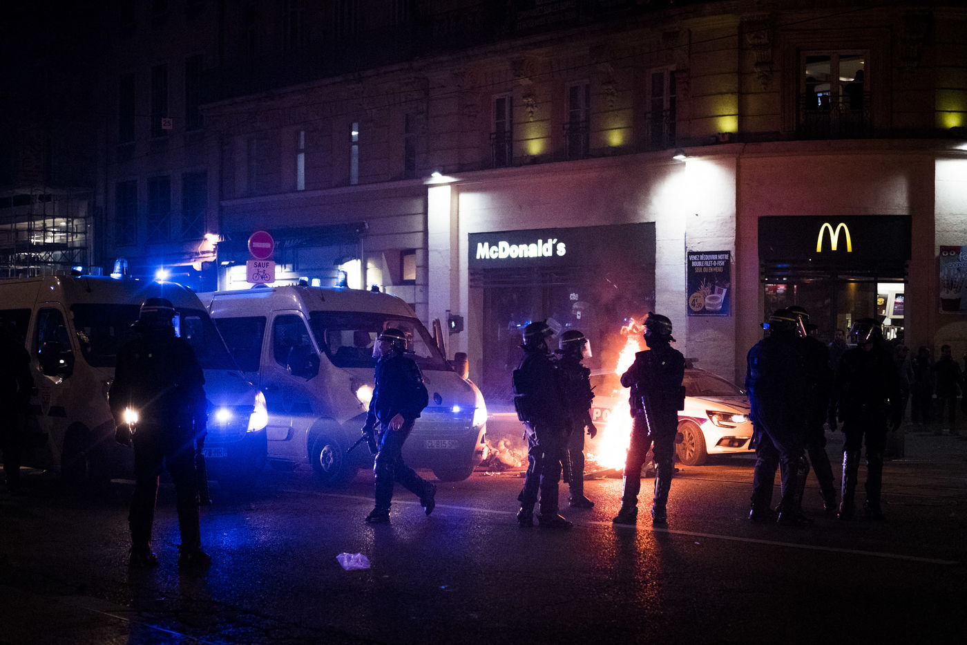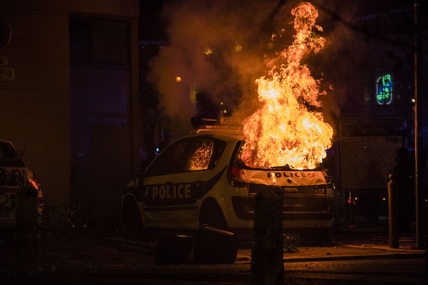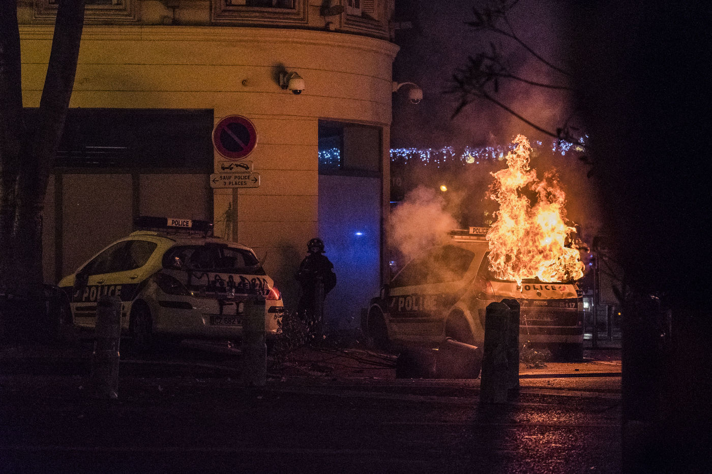 Une voiture de police a était incendié et plusieurs autres véhicules fracturées.