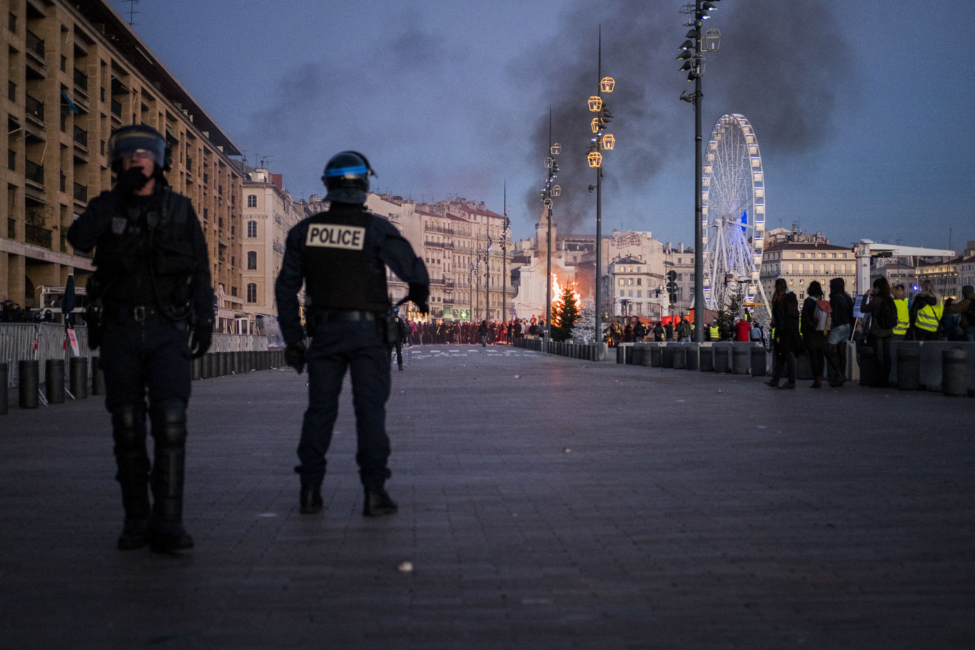 Several barricades have been installed from the old port through the Canebière and one can everywhere in the city center of Marseille.