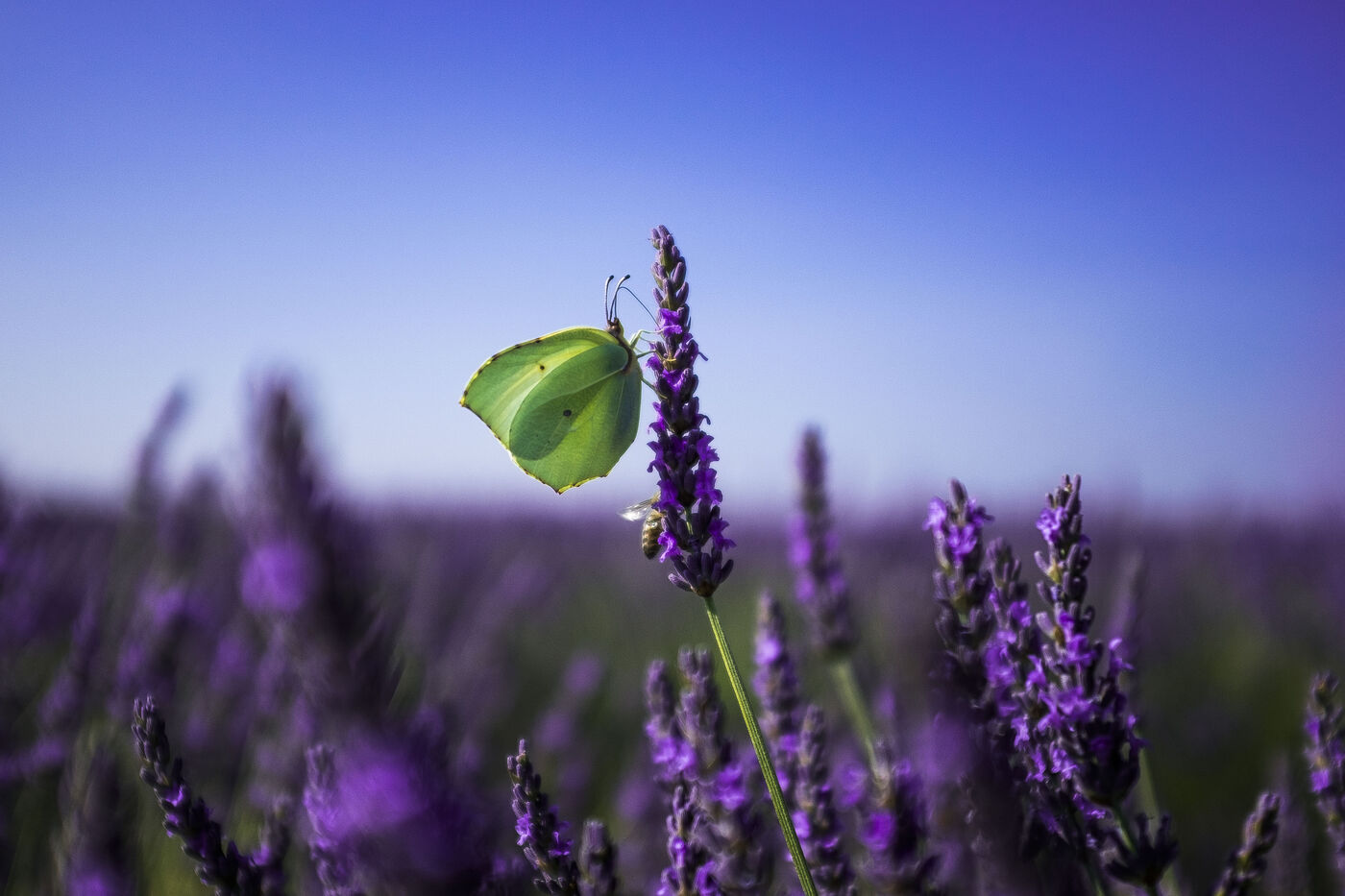 Papillons citron dans les champs de lavande de Valensole