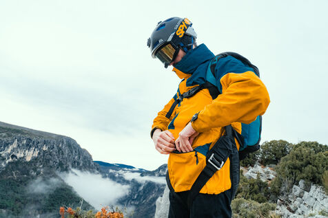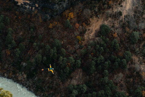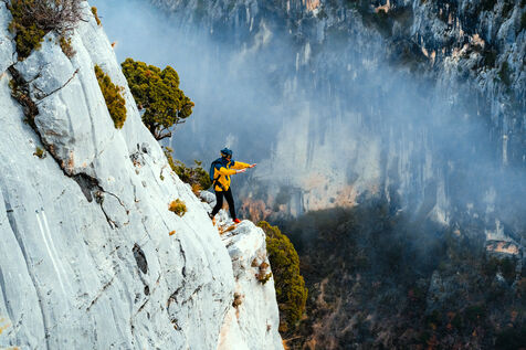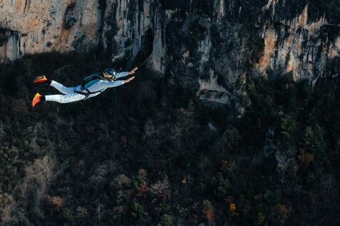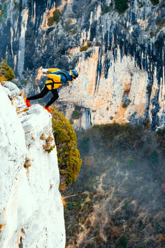 Un homme effectuant un base jump depuis une falaise - Moustier Sainte Marie - France - PARTIE 1
